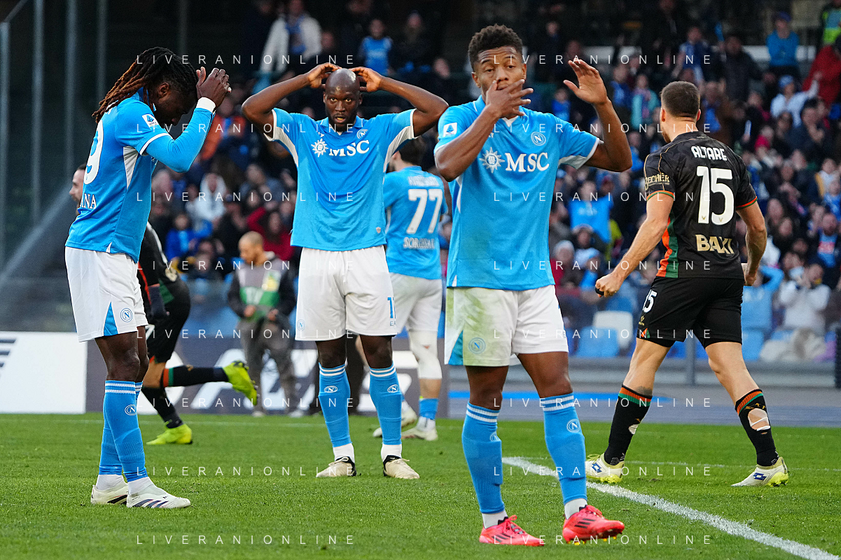 29-12-2024 NAPOLI -CAMPIONATO DI CALCIO SERIE A NAPOLI-VENEZIA nella foto: delusione Frank Anguissa, Romelu Lukaku, David Neres Foto Mosca, Ag.Liverani