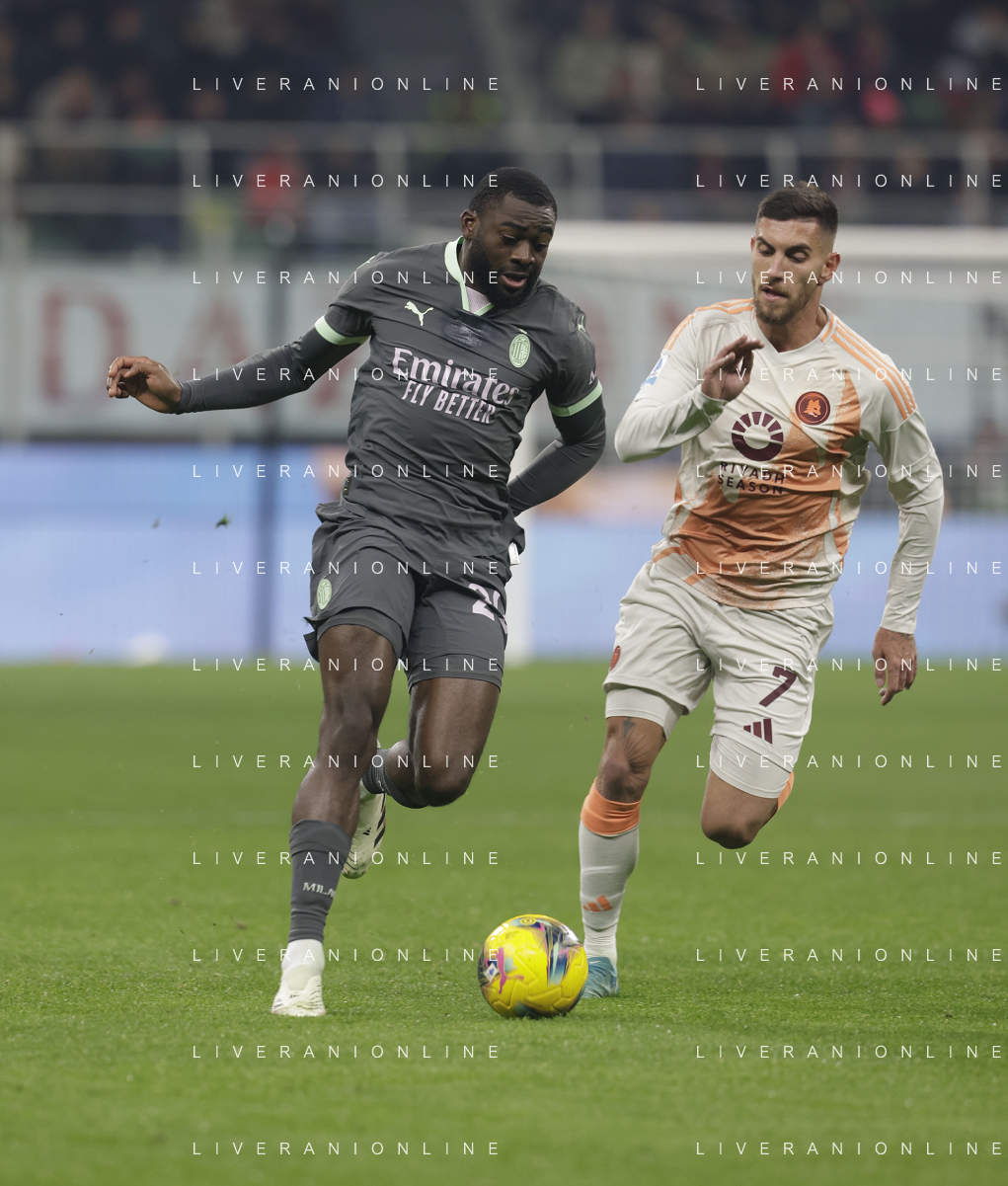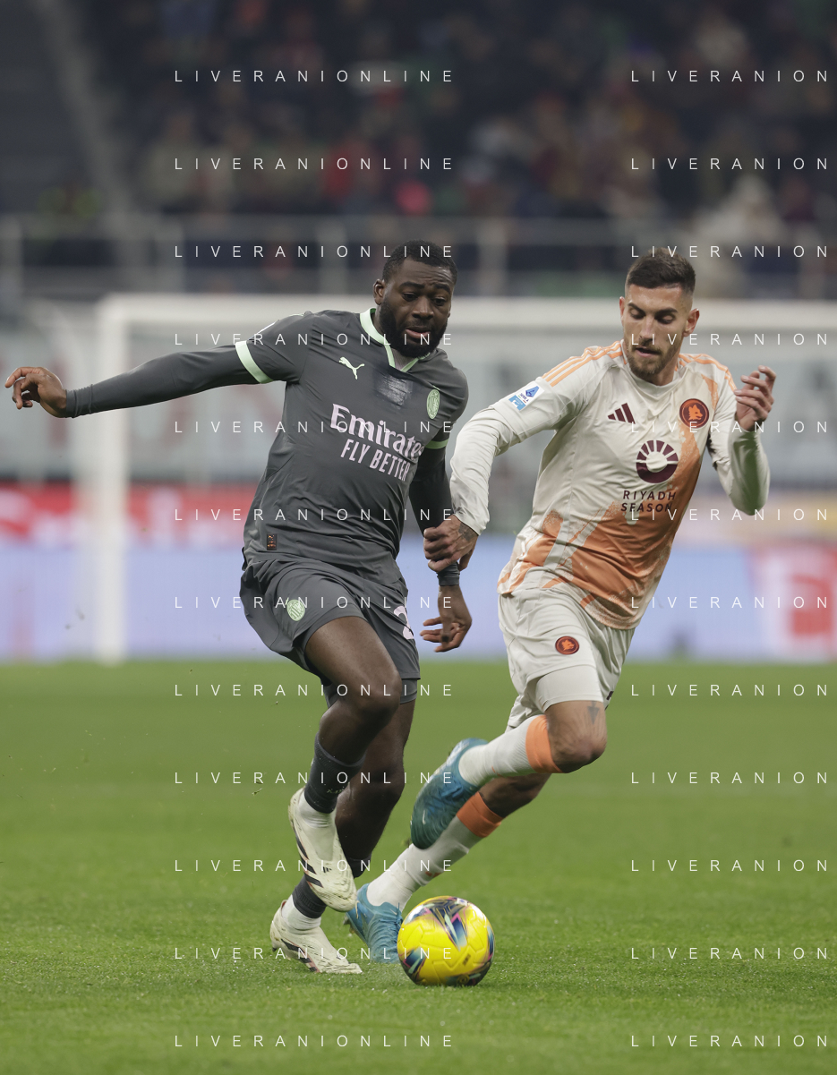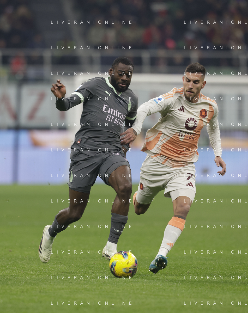 Milan vs Roma nella foto Youssouf Fofana (Milan) e sulla SX Emerson Royal (Milan) Milano 29-12-2024 Stadio Giuseppe Meazza - San Siro Campionato Serie A Enilive - 18a giornata foto Roberto Garavaglia/Agenzia Aldo Liverani sas
