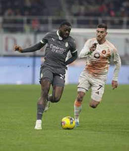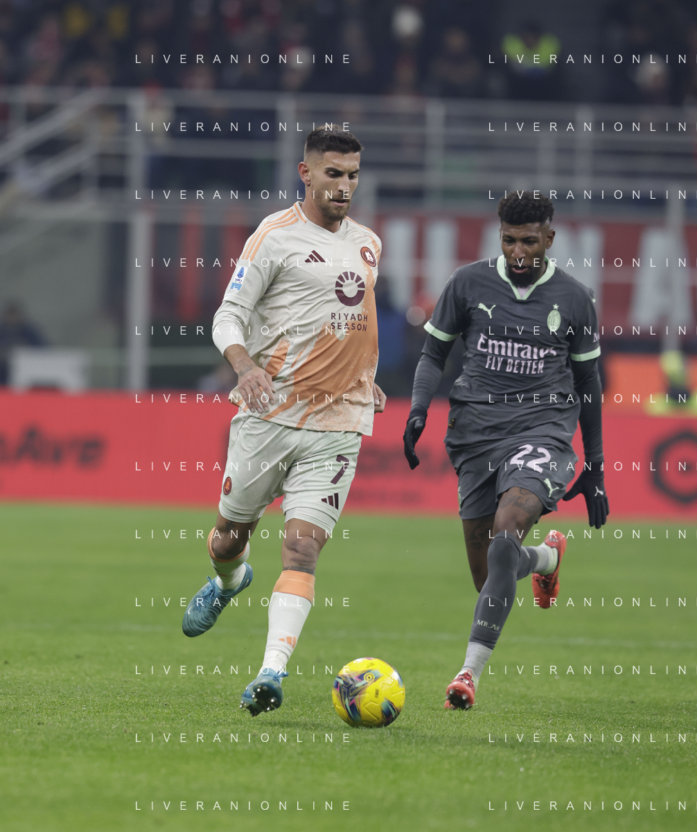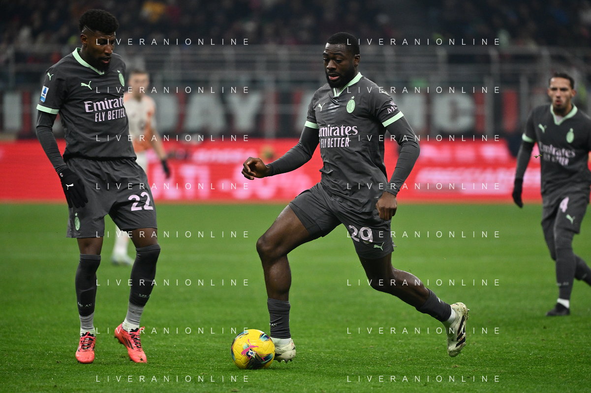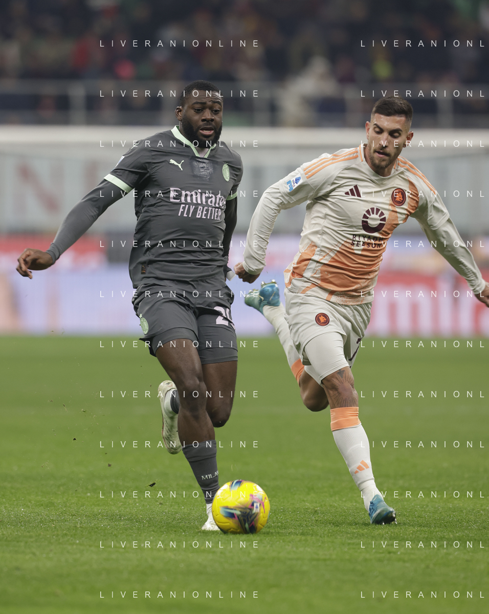 Milan vs Roma nella foto Youssouf Fofana (Milan) e sulla SX Emerson Royal (Milan) Milano 29-12-2024 Stadio Giuseppe Meazza - San Siro Campionato Serie A Enilive - 18a giornata foto Roberto Garavaglia/Agenzia Aldo Liverani sas