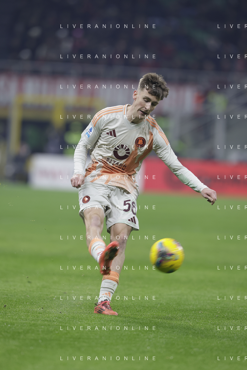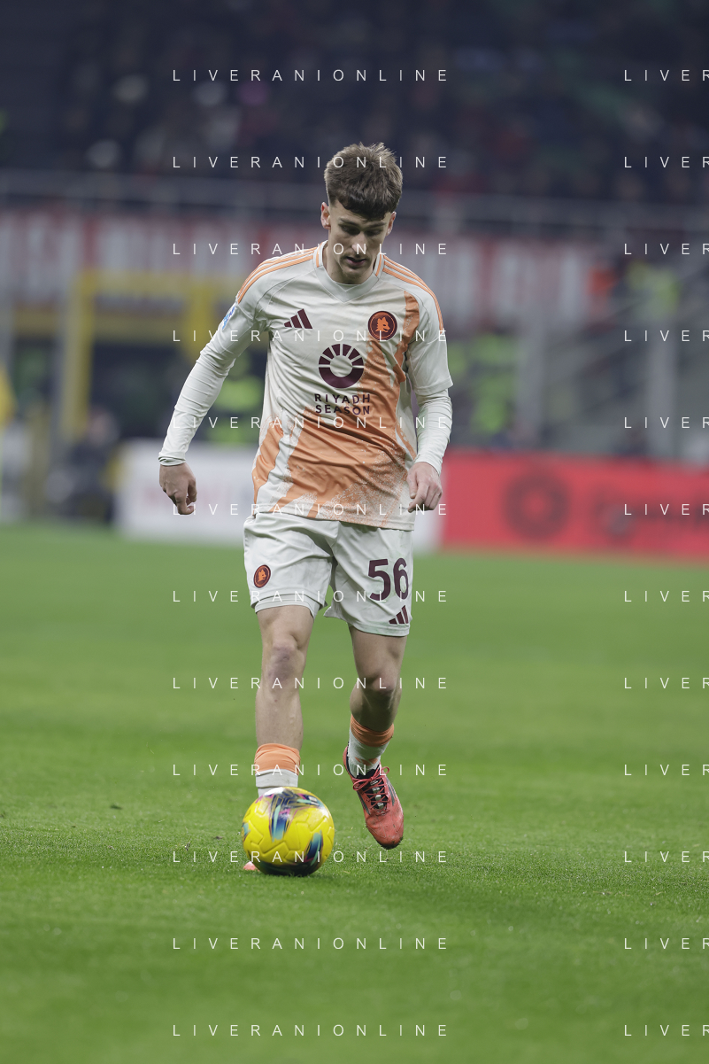 Milan vs Roma nella foto Niccolo' Pisilli (Roma) Milano 29-12-2024 Stadio Giuseppe Meazza - San Siro Campionato Serie A Enilive - 18a giornata foto Roberto Garavaglia/Agenzia Aldo Liverani sas