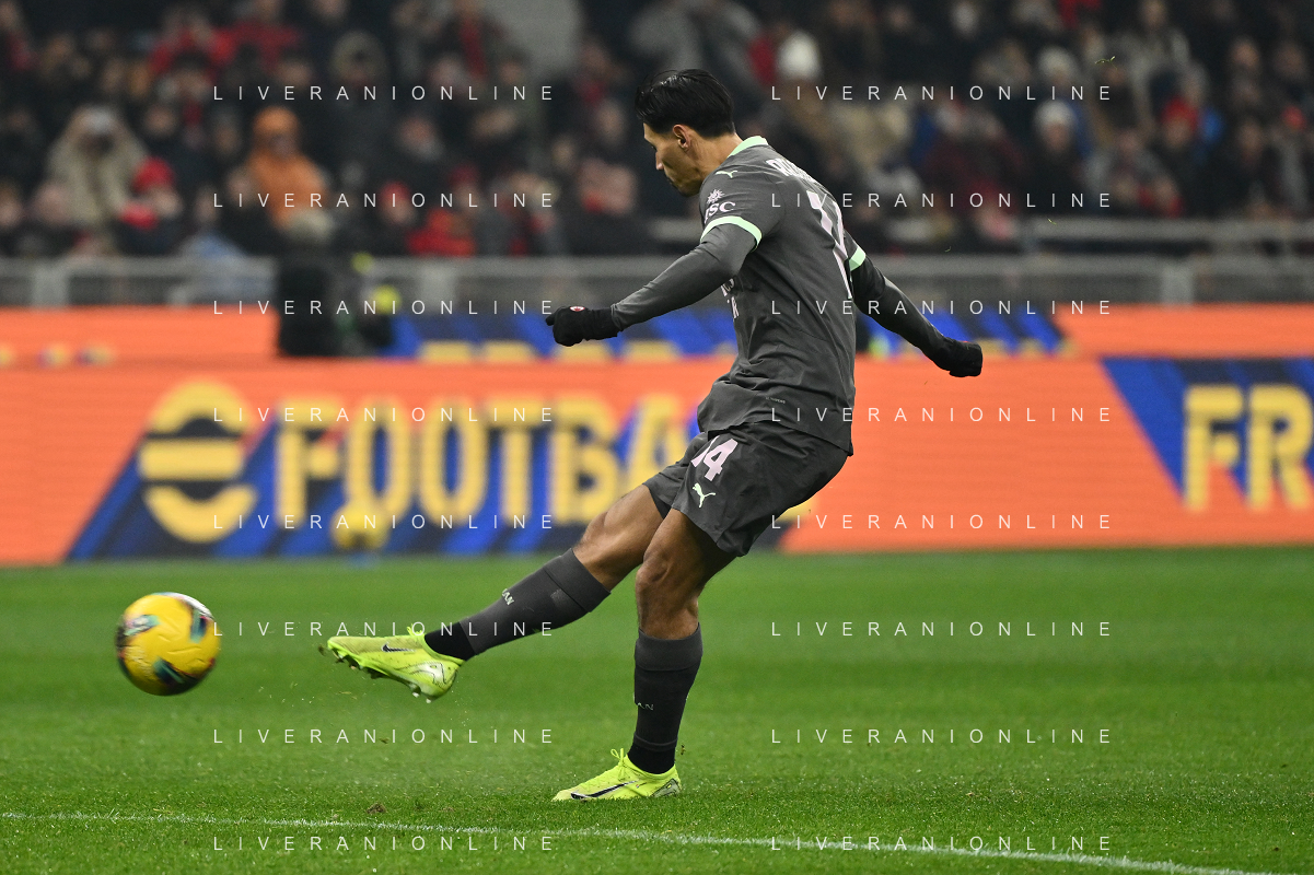 Milan vs Roma nella foto Tijjani Reijnders (Milan) al tiro Milano 29-12-2024 Stadio Giuseppe Meazza - San Siro Campionato Serie A Enilive - 18a giornata foto Roberto Garavaglia/Agenzia Aldo Liverani sas