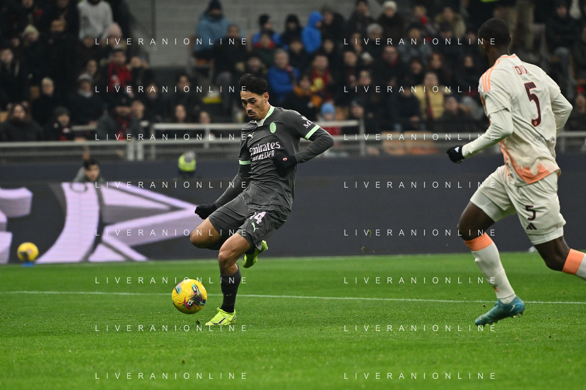 Milan vs Roma nella foto Alexis Saelemaekers (Roma) e Alejandro Jimenez (Milan) Milano 29-12-2024 Stadio Giuseppe Meazza - San Siro Campionato Serie A Enilive - 18a giornata foto Roberto Garavaglia/Agenzia Aldo Liverani sas