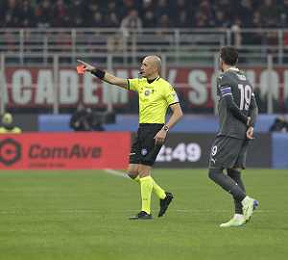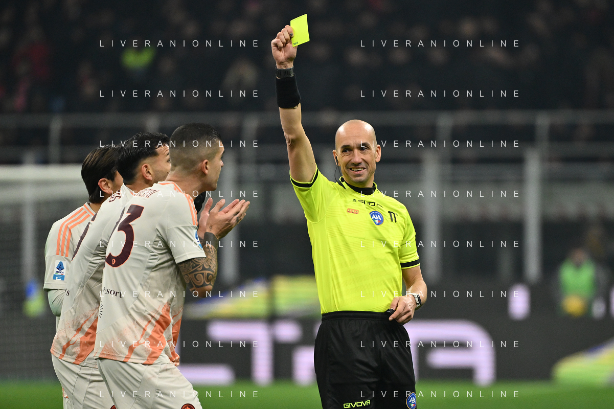 Milan vs Roma nella foto l'arbitro Michael Fabbri di Ravenna - cartellino giallo ammonizione Milano 29-12-2024 Stadio Giuseppe Meazza - San Siro Campionato Serie A Enilive - 18a giornata foto Roberto Garavaglia/Agenzia Aldo Liverani sas- AGENZIA ALDO LIVERANI SAS