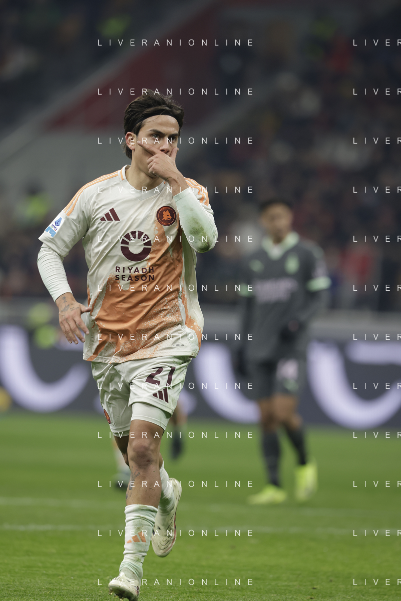 Milan vs Roma nella foto Paulo Dybala (Roma) esultanza dopo il gol dell'1 a 1 Milano 29-12-2024 Stadio Giuseppe Meazza - San Siro Campionato Serie A Enilive - 18a giornata foto Roberto Garavaglia/Agenzia Aldo Liverani sas- AGENZIA ALDO LIVERANI SAS