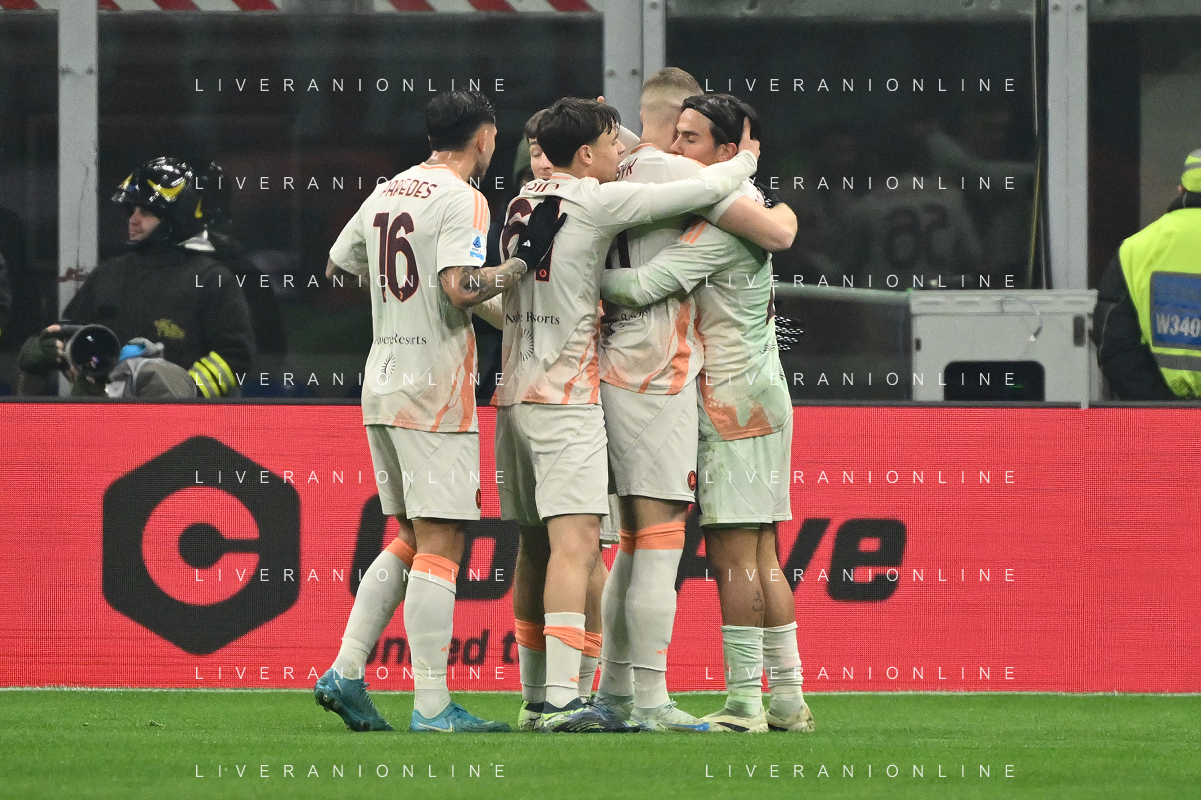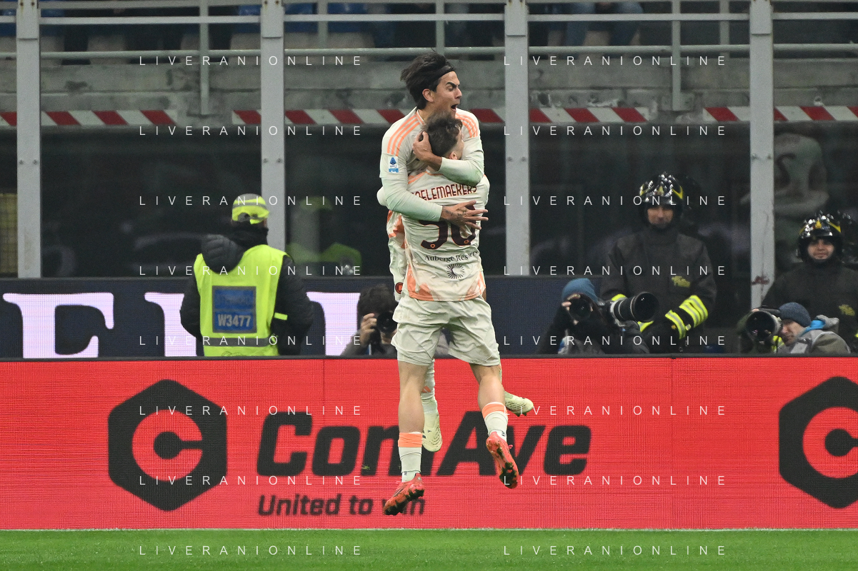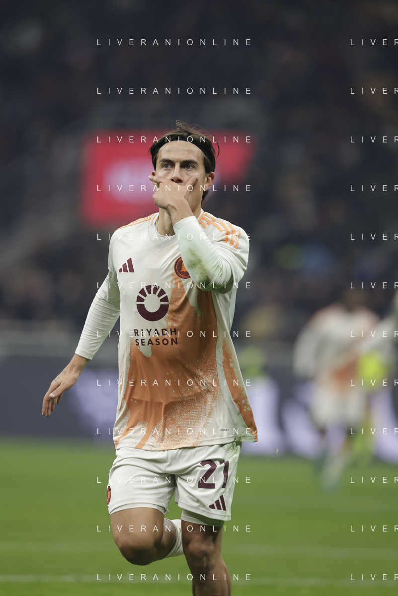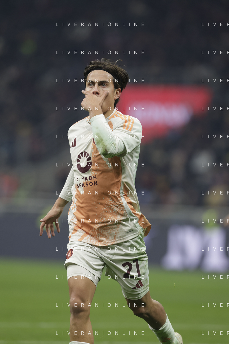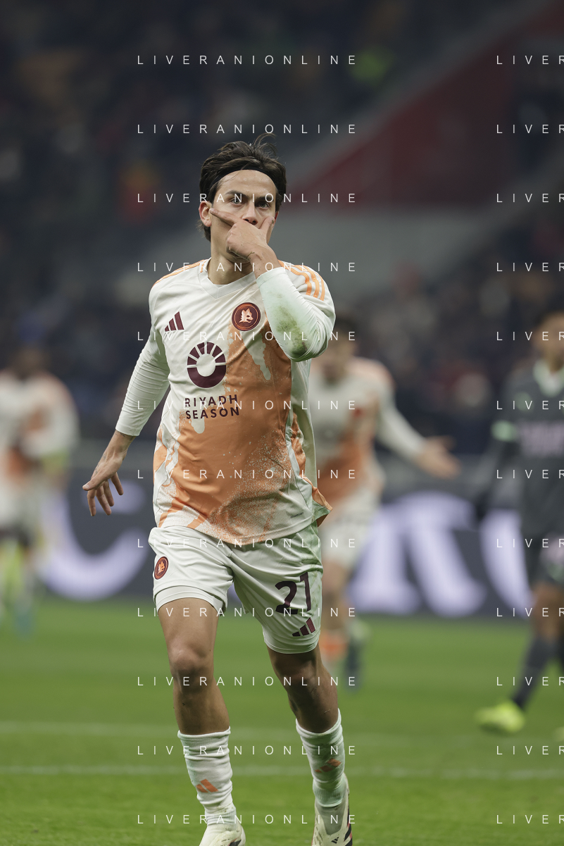 Milan vs Roma nella foto Roma esultanza dopo il gol dell'1 a 1 paulo dybala Milano 29-12-2024 Stadio Giuseppe Meazza - San Siro Campionato Serie A Enilive - 18a giornata foto Roberto Garavaglia/Agenzia Aldo Liverani sas- AGENZIA ALDO LIVERANI SAS