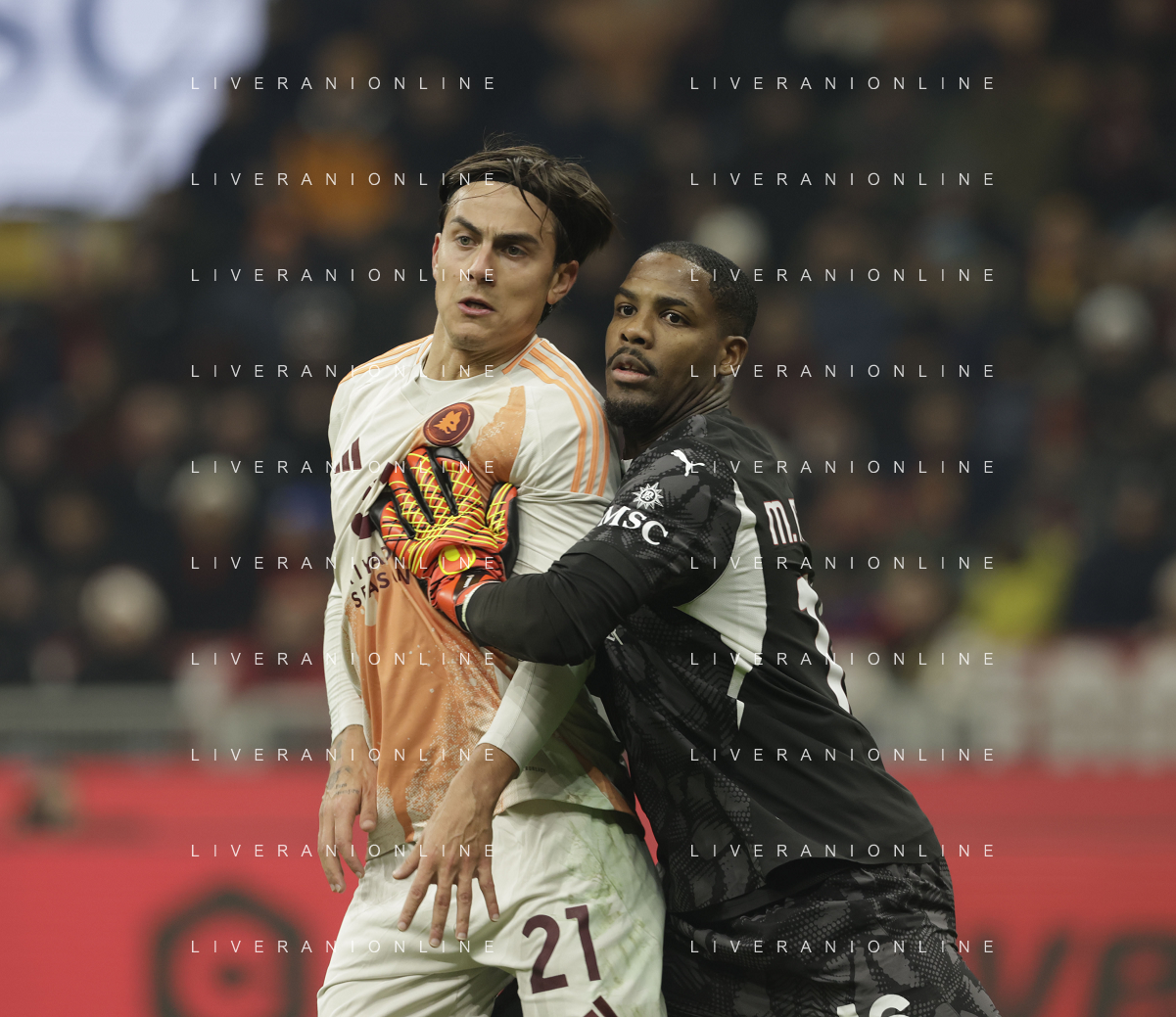 Milan vs Roma nella foto Paulo Dybala (Roma) e Matteo Gabbia (Milan) Milano 29-12-2024 Stadio Giuseppe Meazza - San Siro Campionato Serie A Enilive - 18a giornata foto Roberto Garavaglia/Agenzia Aldo Liverani sas- AGENZIA ALDO LIVERANI SAS