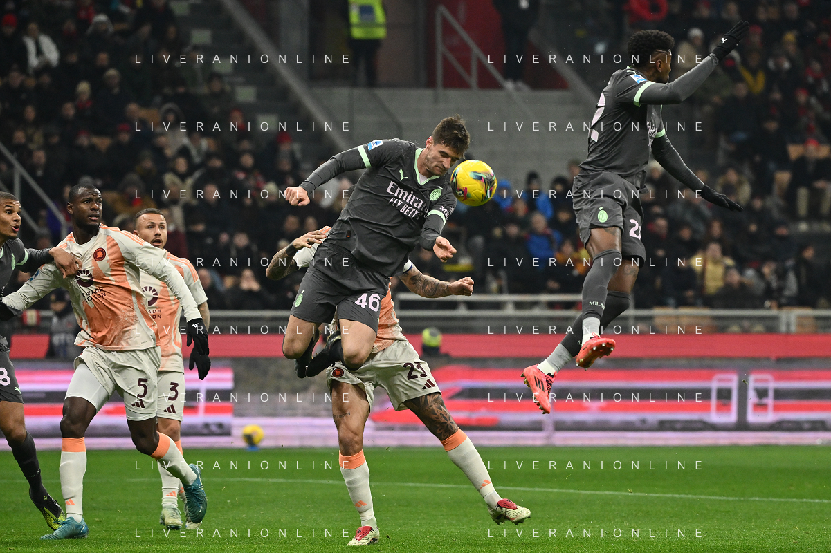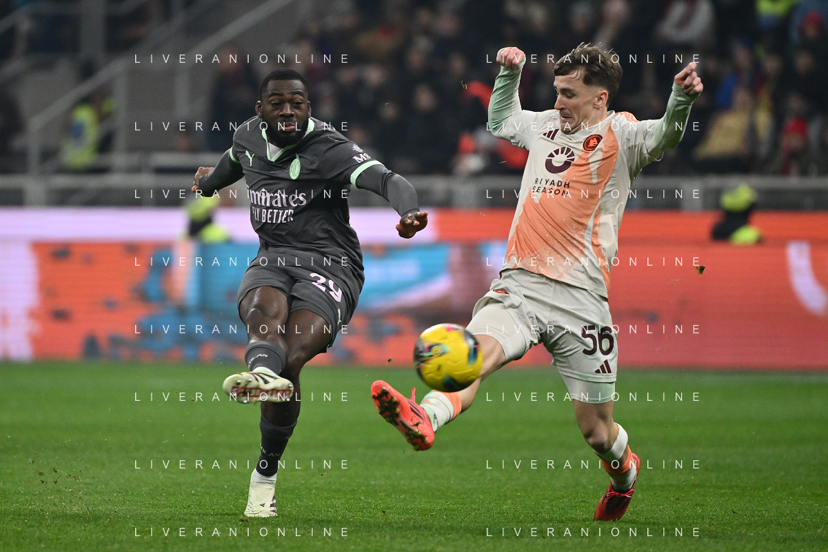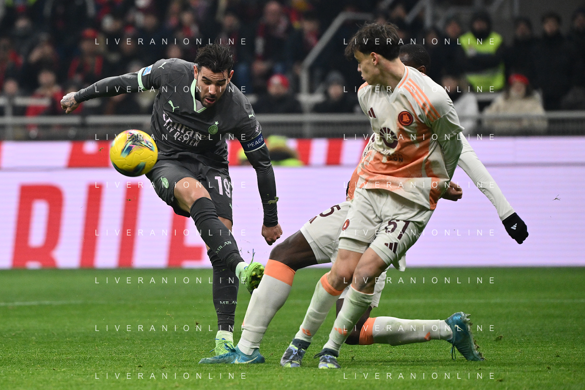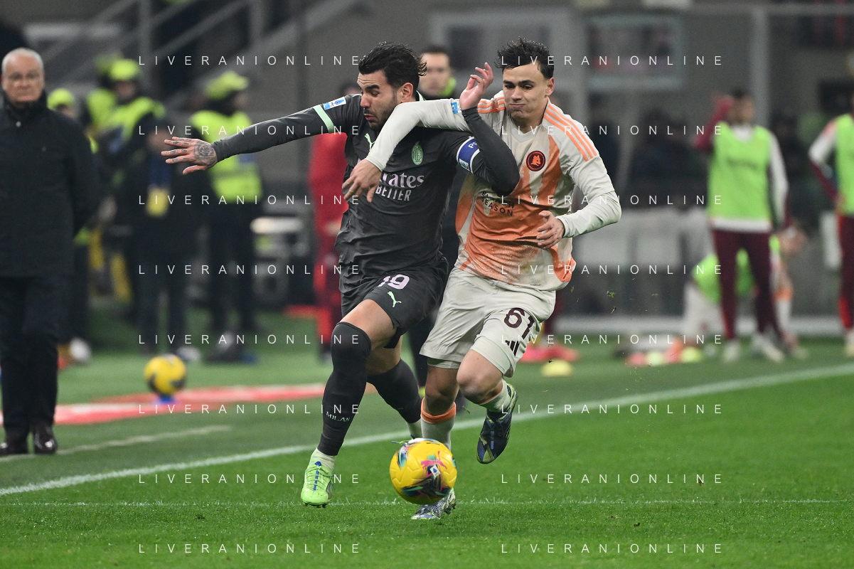 Milan vs Roma nella foto Theo Hernandez (Milan) e Niccolo' Pisilli (Roma) Milano 29-12-2024 Stadio Giuseppe Meazza - San Siro Campionato Serie A Enilive - 18a giornata foto Roberto Garavaglia/Agenzia Aldo Liverani sas- AGENZIA ALDO LIVERANI SAS