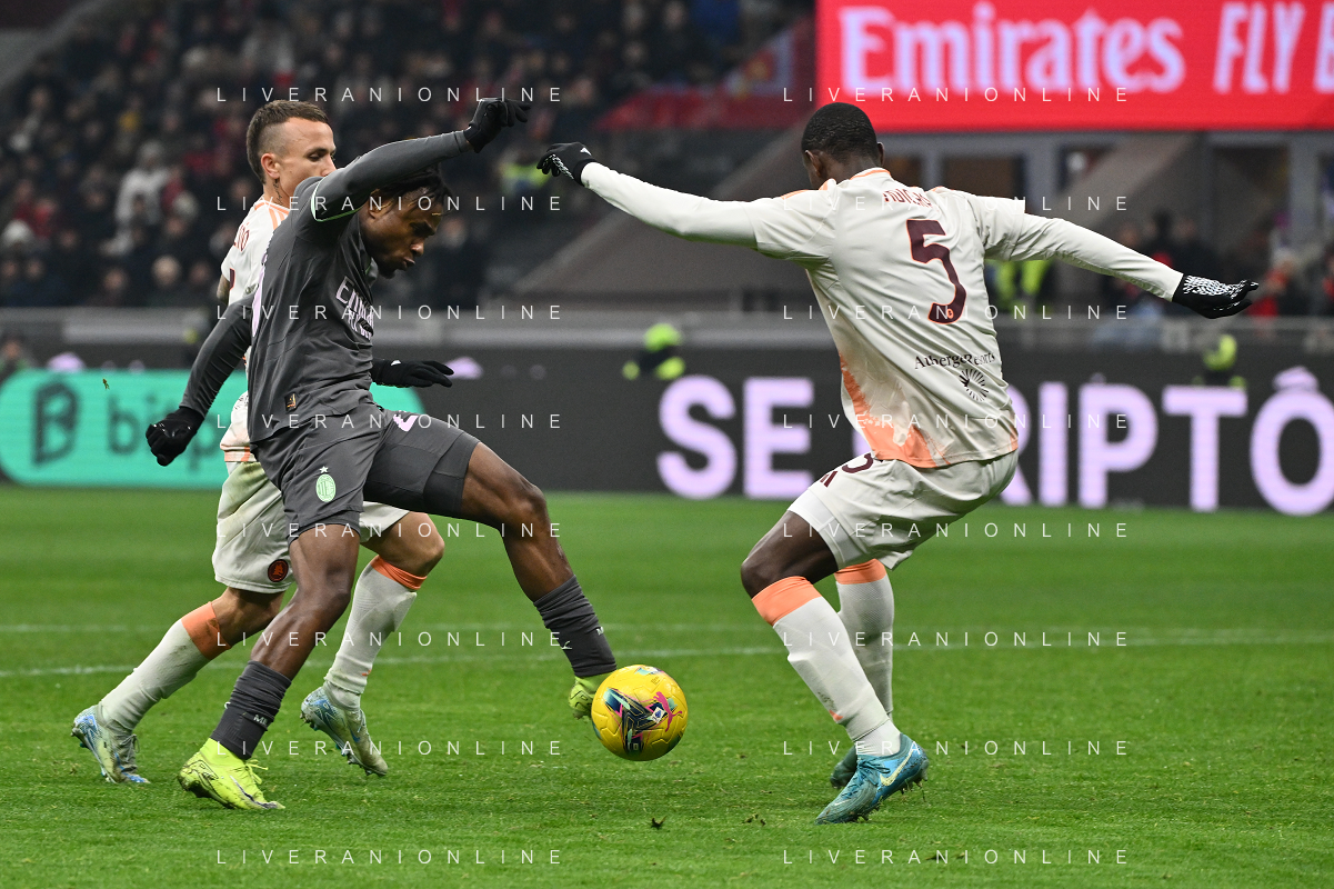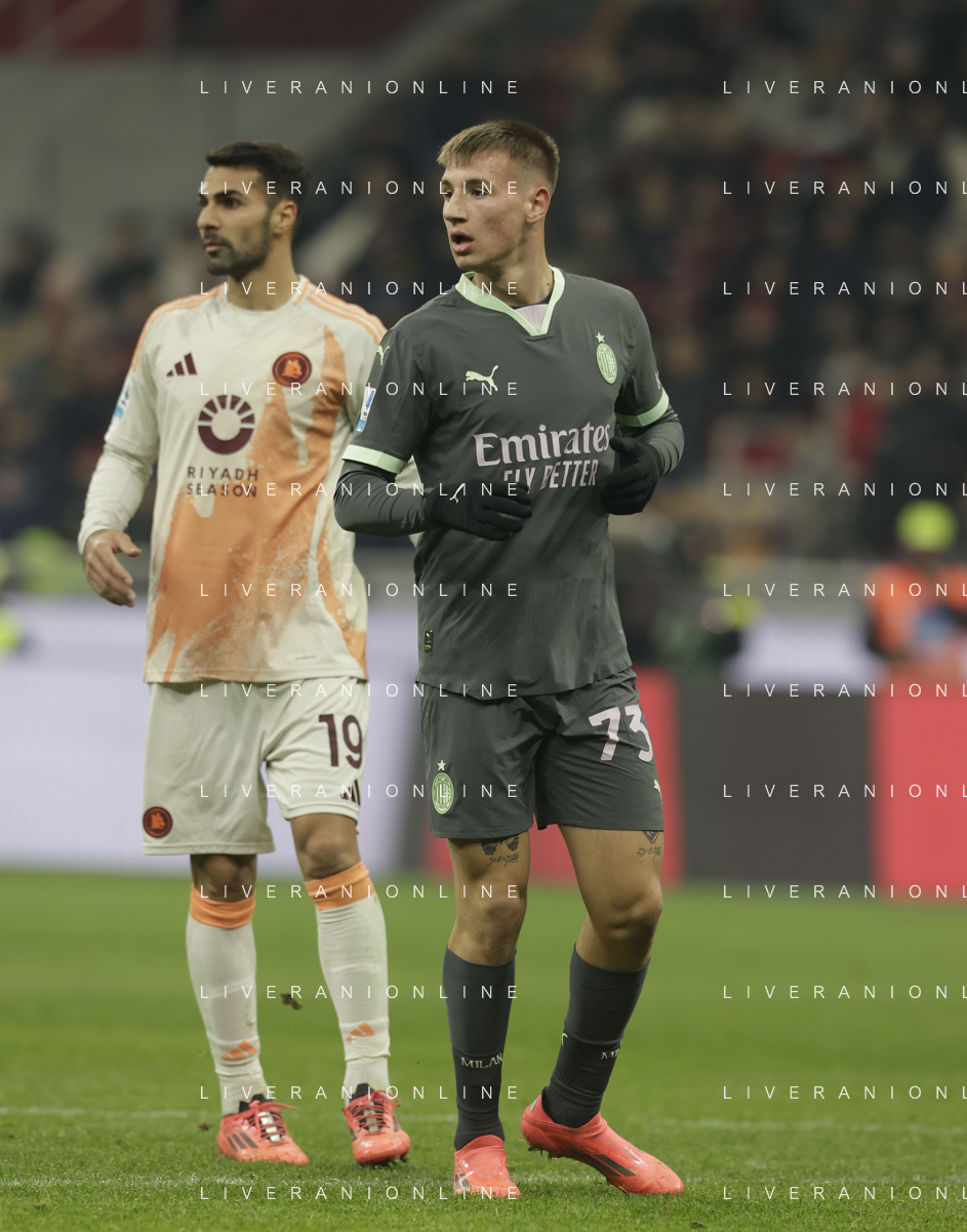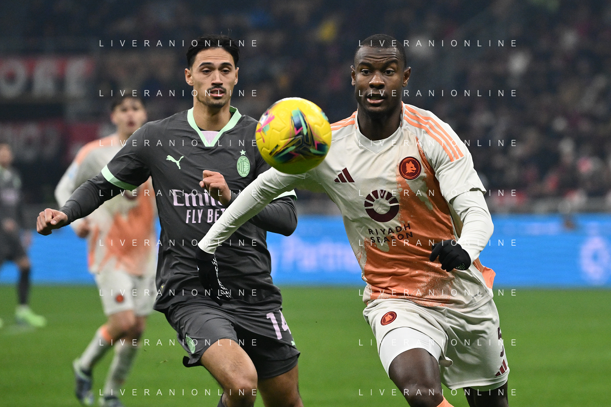 Milan vs Roma nella foto Theo Hernandez (Milan) e Niccolo' Pisilli (Roma) Milano 29-12-2024 Stadio Giuseppe Meazza - San Siro Campionato Serie A Enilive - 18a giornata foto Roberto Garavaglia/Agenzia Aldo Liverani sas- AGENZIA ALDO LIVERANI SAS