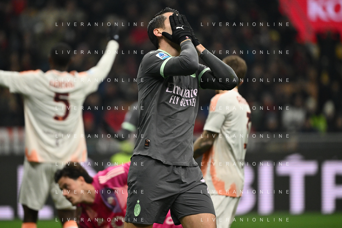 Milan vs Roma nella foto Matteo Gabbia (Milan) occasione da gol Milano 29-12-2024 Stadio Giuseppe Meazza - San Siro Campionato Serie A Enilive - 18a giornata foto Roberto Garavaglia/Agenzia Aldo Liverani sas- AGENZIA ALDO LIVERANI SAS