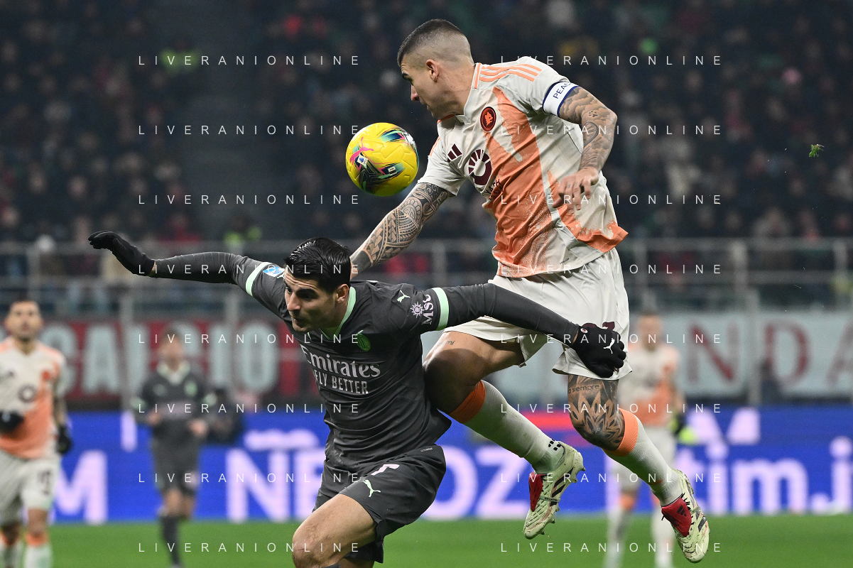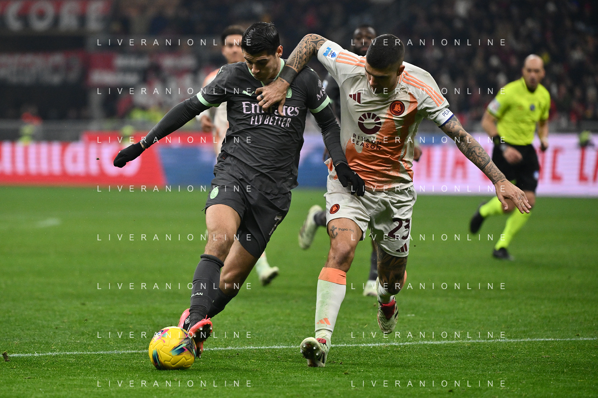 Milan vs Roma nella foto Alvaro Morata (Milan) e Gianluca Mancini (Roma) Milano 29-12-2024 Stadio Giuseppe Meazza - San Siro Campionato Serie A Enilive - 18a giornata foto Roberto Garavaglia/Agenzia Aldo Liverani sas- AGENZIA ALDO LIVERANI SAS