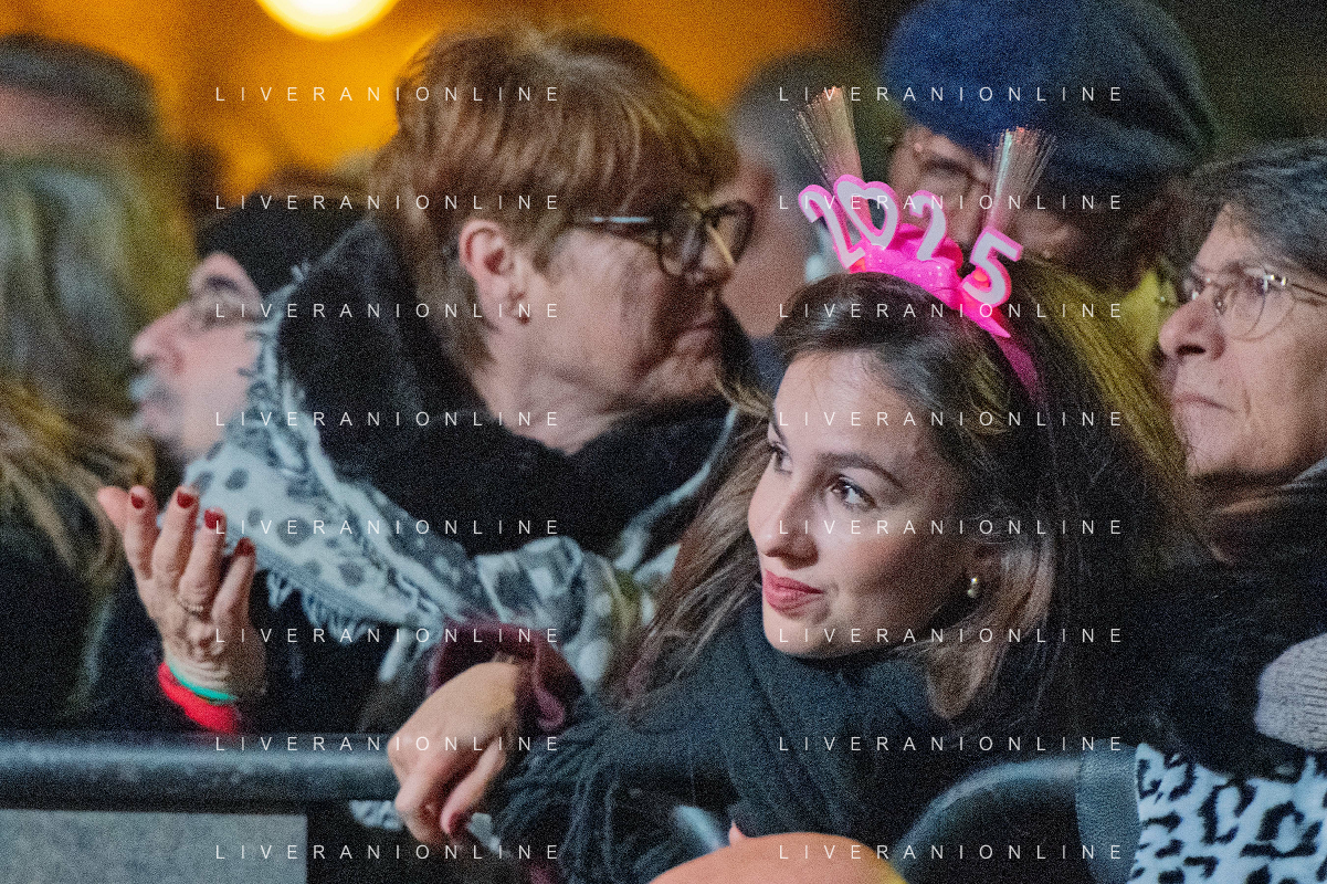 31-12-2024. Concerto di Stewart Copeland (batterista e fondatore del gruppo Police) e la sua band, capodanno 2025 a cagliari, in Piazza Yenne. Foto Salvatore Moi/Agenzia Aldo Liverani s.as. Nella foto: Pubblico al concerto di Stewart Copeland (batterista e fondatore del gruppo Police)