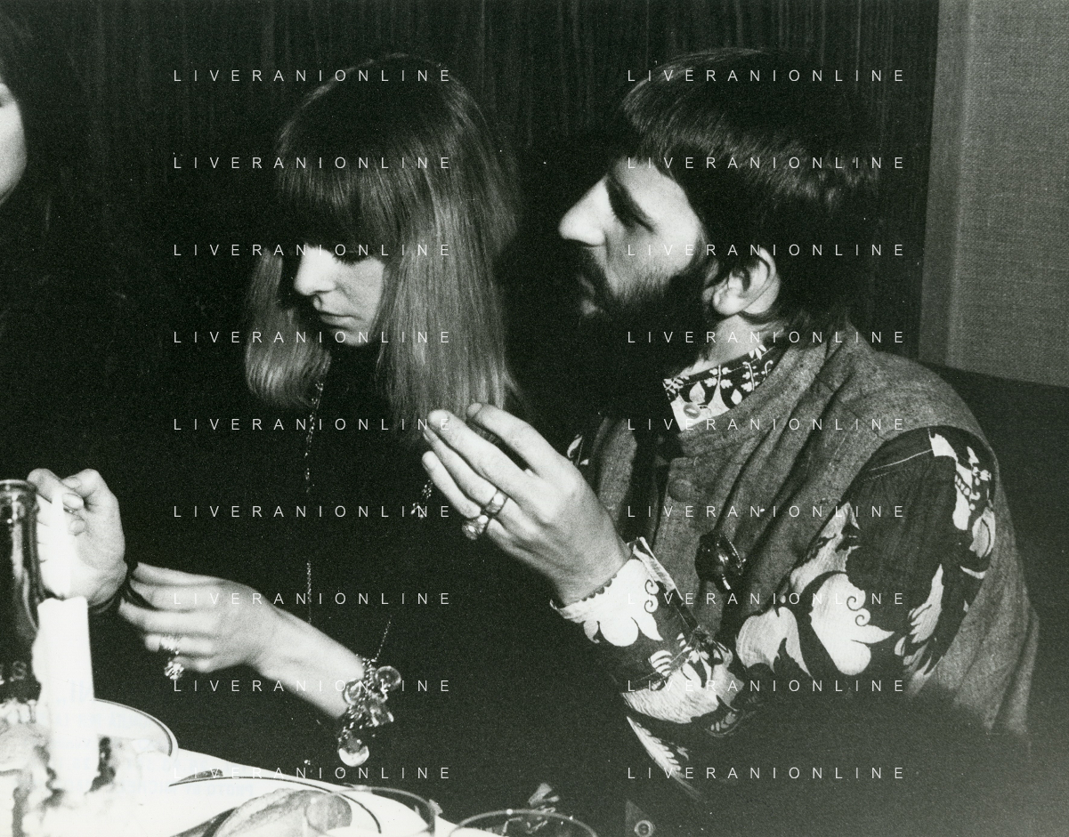 ST-RETROSPETTIVA RINGO STARR CANTANTE E COMPONENENTE DEL COMPLESSO MUSICALE DEI BETALES NELLA FOTO RINGO STARR CON LA MOGLIE MAUREEN COX A MILANO AG ALDO LIVERANI SAS