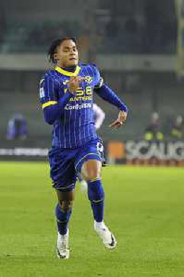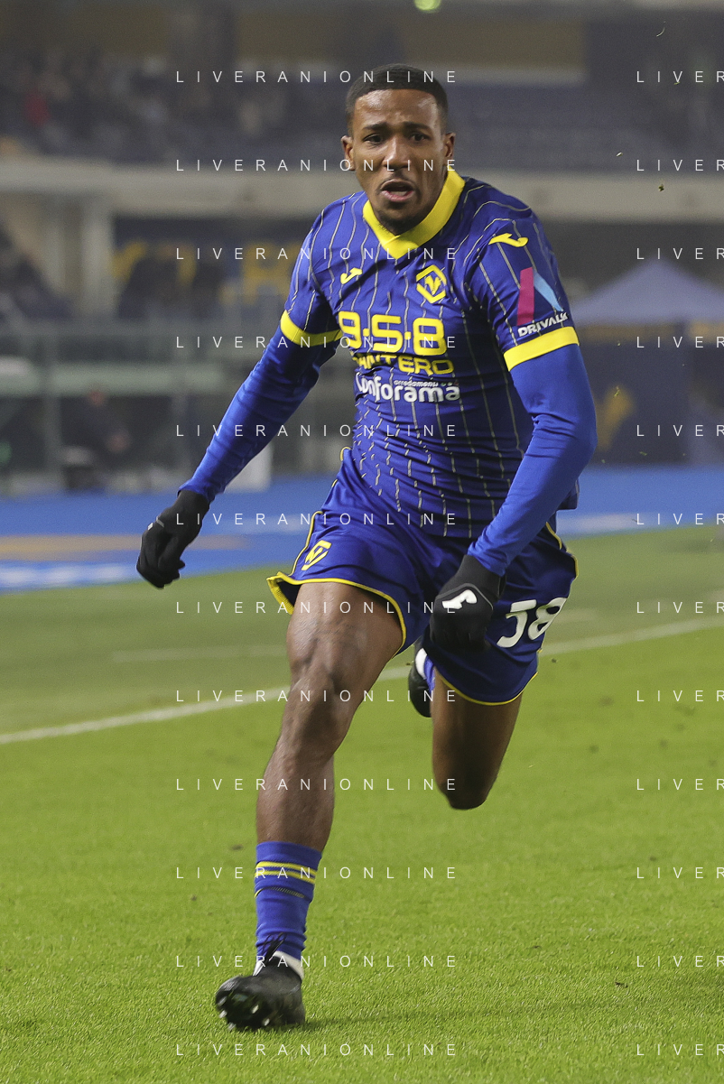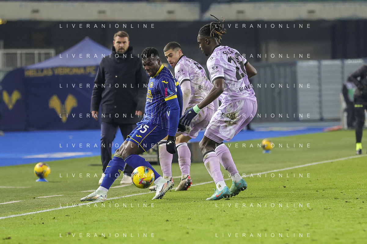Jackson Tchatchoua of Hellas Verona FC during Hellas Verona FC vs Udinese Calcio, 19° Serie A Enilive 2024-25 game at Marcantonio Bentegodi stadium in Verona (VR), Italy, on January 04, 2025. (Photo by Davide Casentini)-AGENZIA ALDO LIVERANI SAS