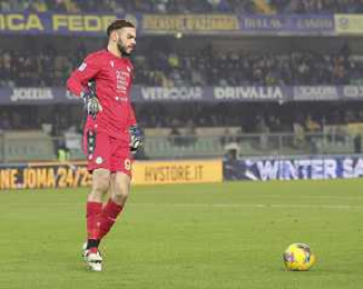 Lorenzo Montipo’ of Hellas Verona FC makes a save during Hellas Verona FC vs Udinese Calcio, 19° Serie A Enilive 2024-25 game at Marcantonio Bentegodi stadium in Verona (VR), Italy, on January 04, 2025. (Photo by Davide Casentini)- AGENZIA ALDO LIVERANI SAS