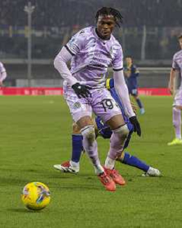 Kingsley Ehizibue of Udinese FC play the ball during Hellas Verona FC vs Udinese Calcio, 19° Serie A Enilive 2024-25 game at Marcantonio Bentegodi stadium in Verona (VR), Italy, on January 04, 2025. (Photo by Davide Casentini)-AGENZIA ALDO LIVERANI SAS