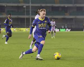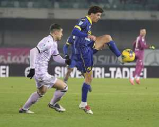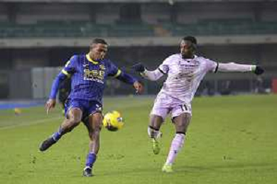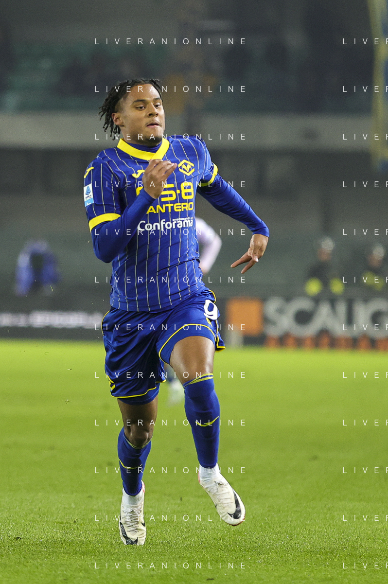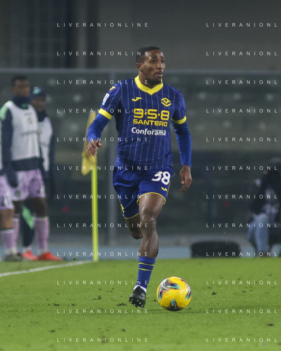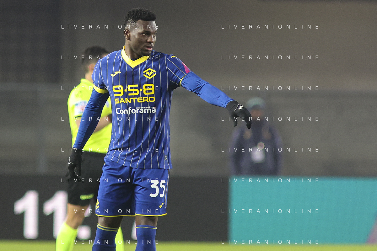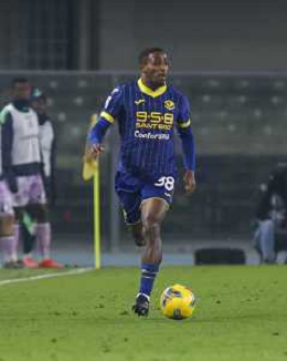 Amin Sarr of Hellas Verona FC during Hellas Verona FC vs Udinese Calcio, 19° Serie A Enilive 2024-25 game at Marcantonio Bentegodi stadium in Verona (VR), Italy, on January 04, 2025. (Photo by Davide Casentini)-AGENZIA ALDO LIVERANI SAS