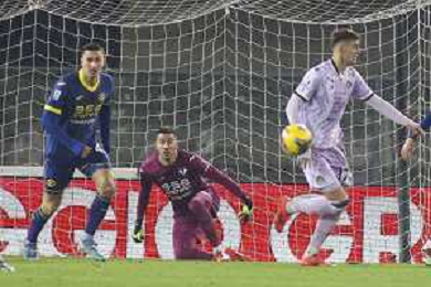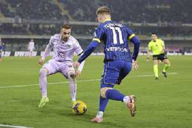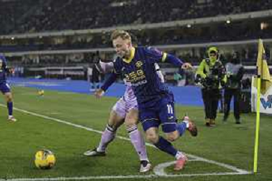 Casper Tengstedt of Hellas Verona FC play the ball during Hellas Verona FC vs Udinese Calcio, 19° Serie A Enilive 2024-25 game at Marcantonio Bentegodi stadium in Verona (VR), Italy, on January 04, 2025. (Photo by Davide Casentini)-AGENZIA ALDO LIVERANI SAS