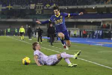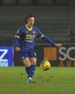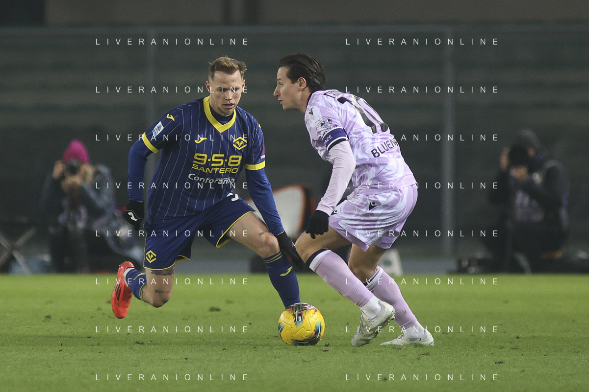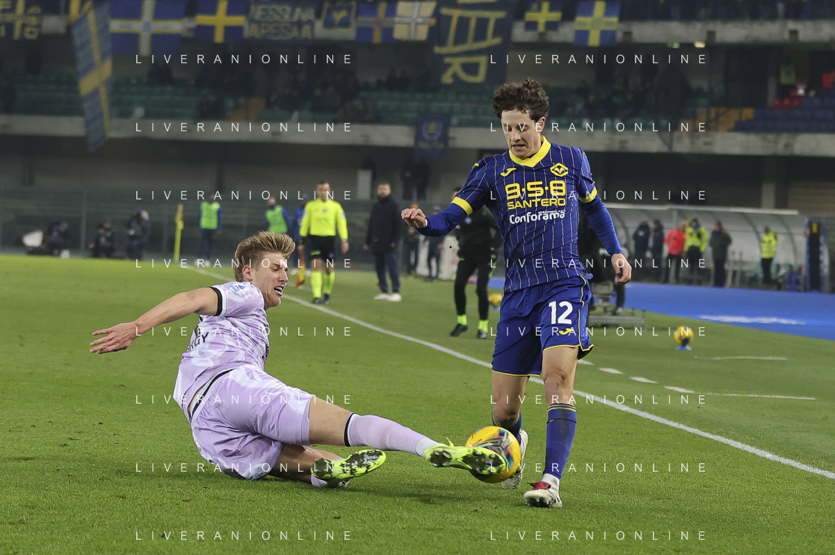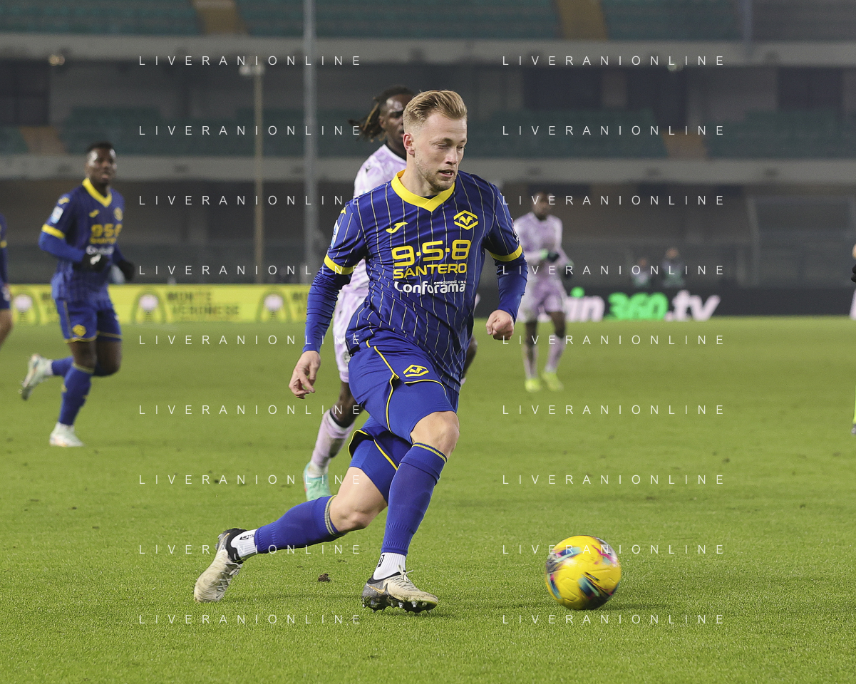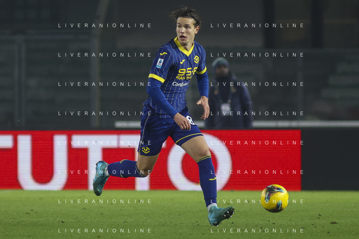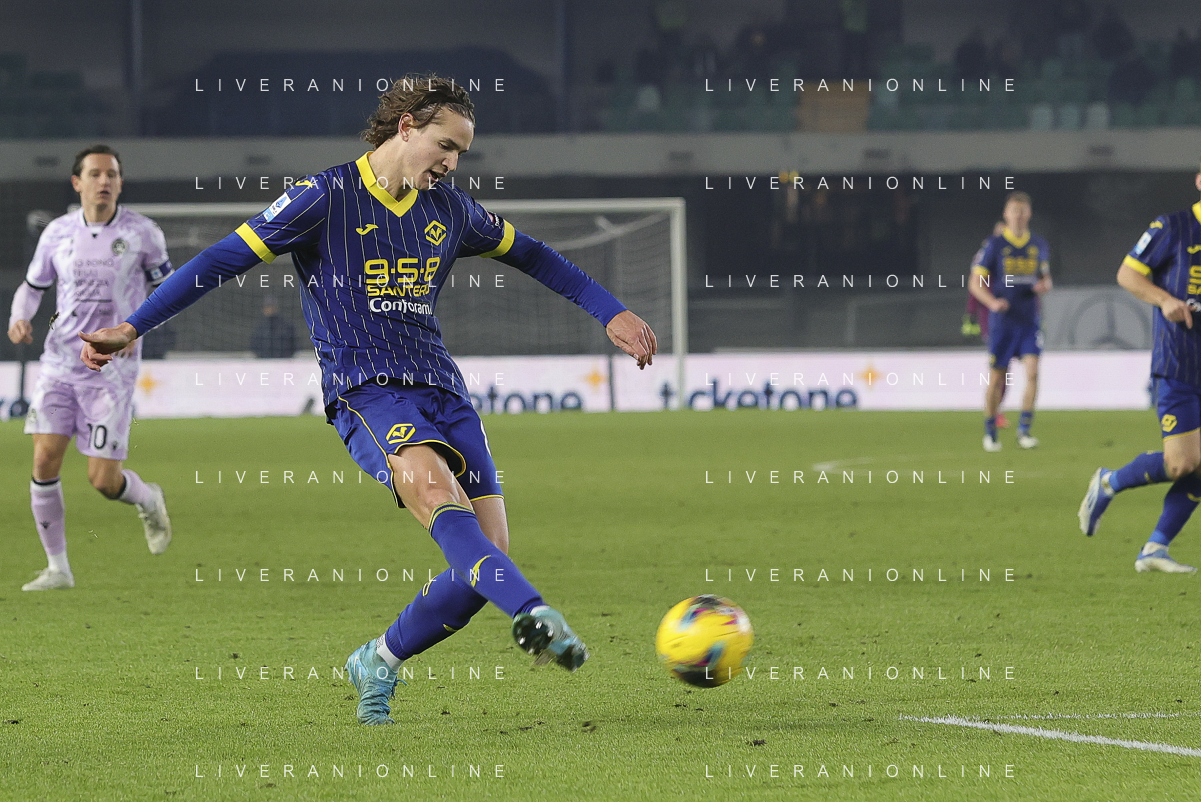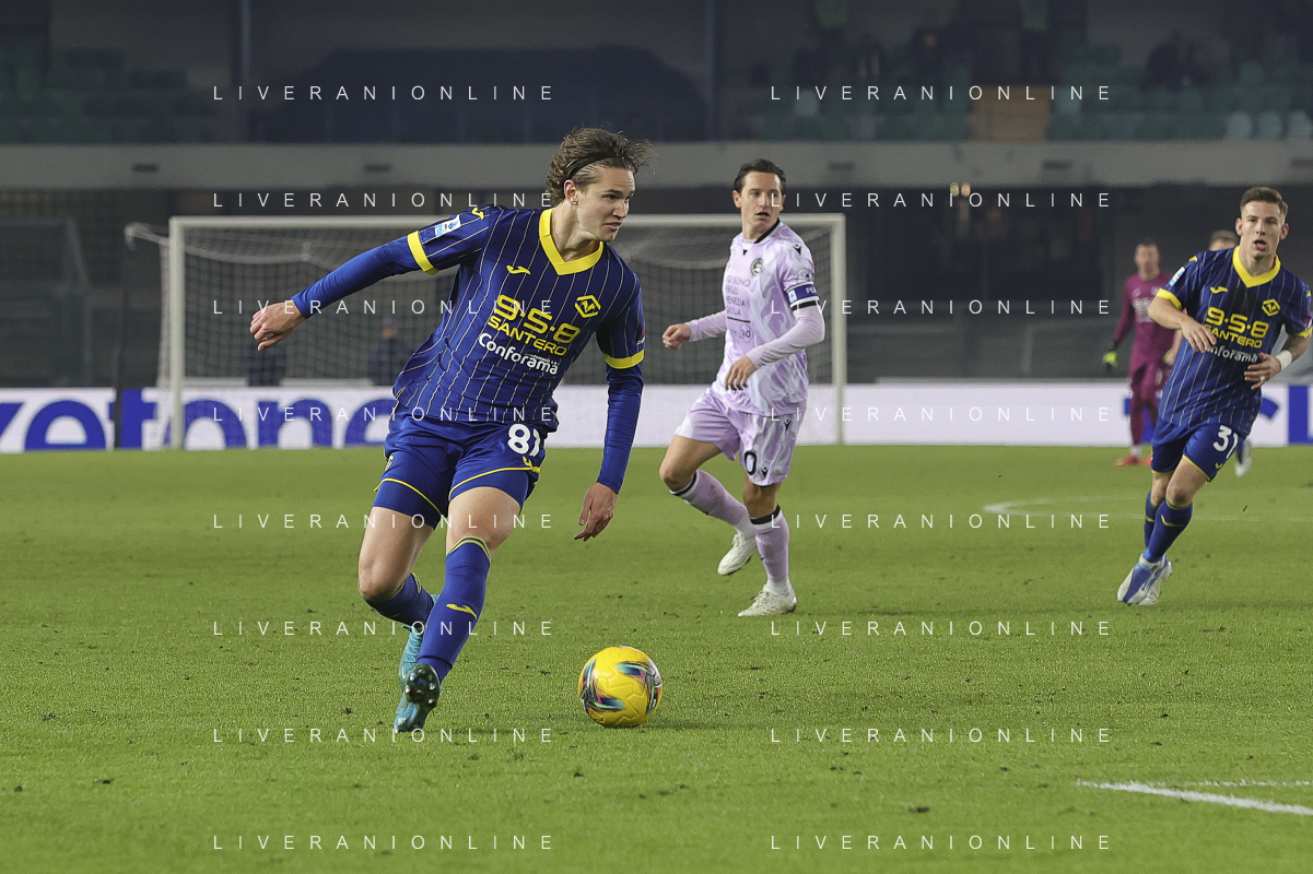 Tomas Suslov of Hellas Verona FC play the ball during Hellas Verona FC vs Udinese Calcio, 19° Serie A Enilive 2024-25 game at Marcantonio Bentegodi stadium in Verona (VR), Italy, on January 04, 2025. (Photo by Davide Casentini)-AGENZIA ALDO LIVERANI SAS