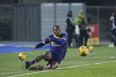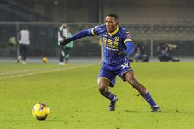 Daniel Mosquera of Hellas Verona FC gestures during Hellas Verona FC vs Udinese Calcio, 19° Serie A Enilive 2024-25 game at Marcantonio Bentegodi stadium in Verona (VR), Italy, on January 04, 2025. (Photo by Davide Casentini)-AGENZIA ALDO LIVERANI SAS
