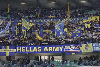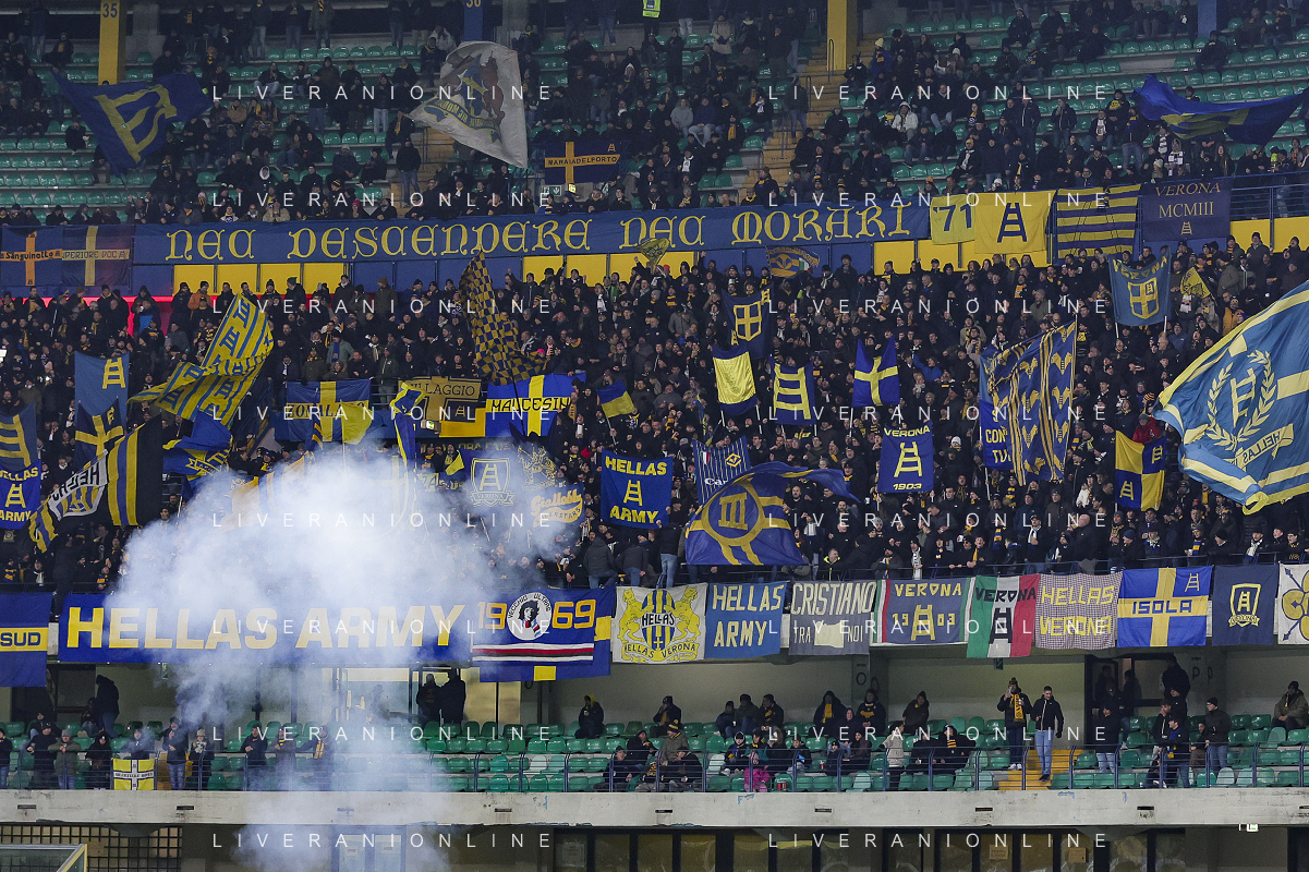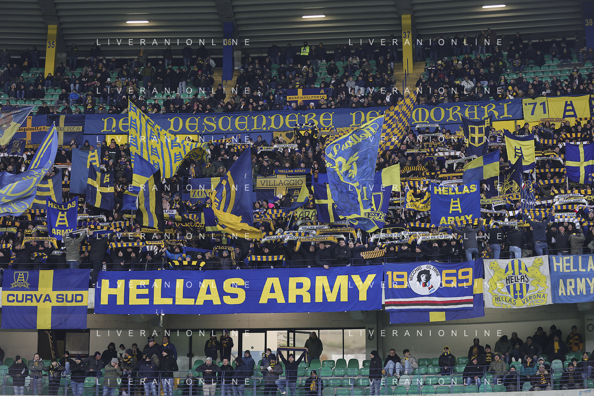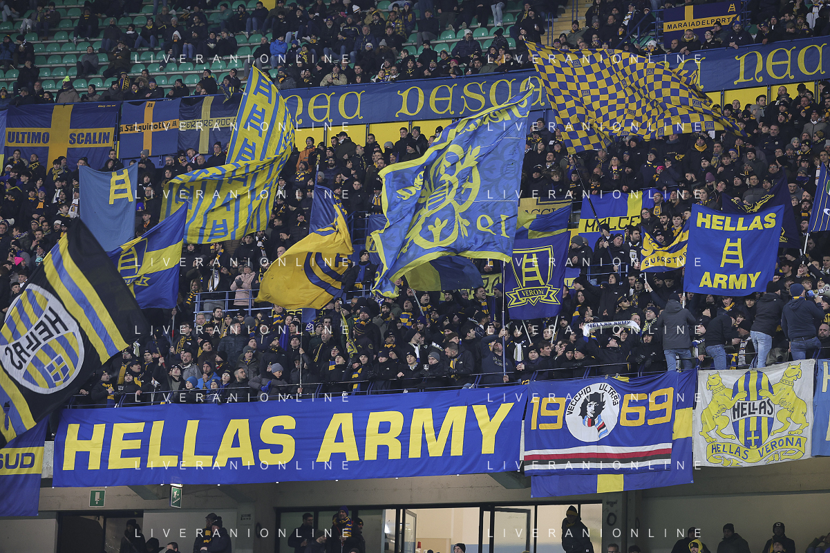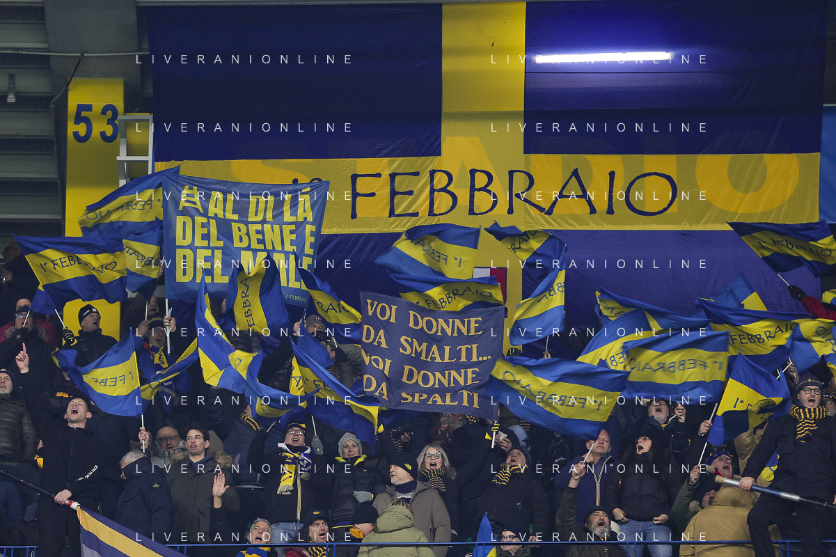 Tifosi - Hellas Verona fans show their support during Hellas Verona FC vs Udinese Calcio, 19° Serie A Enilive 2024-25 game at Marcantonio Bentegodi stadium in Verona (VR), Italy, on January 04, 2025. (Photo by Davide Casentini)-AGENZIA ALDO LIVERANI SAS