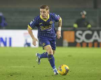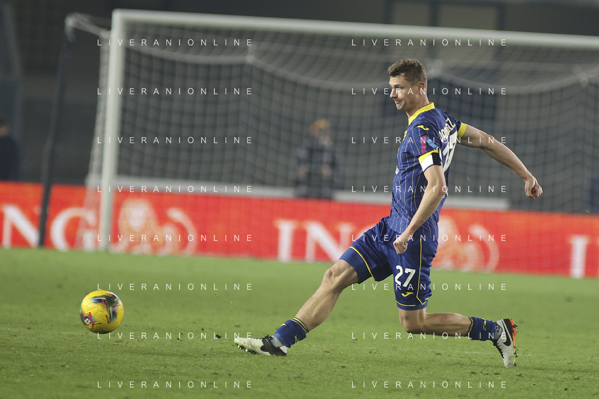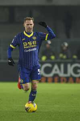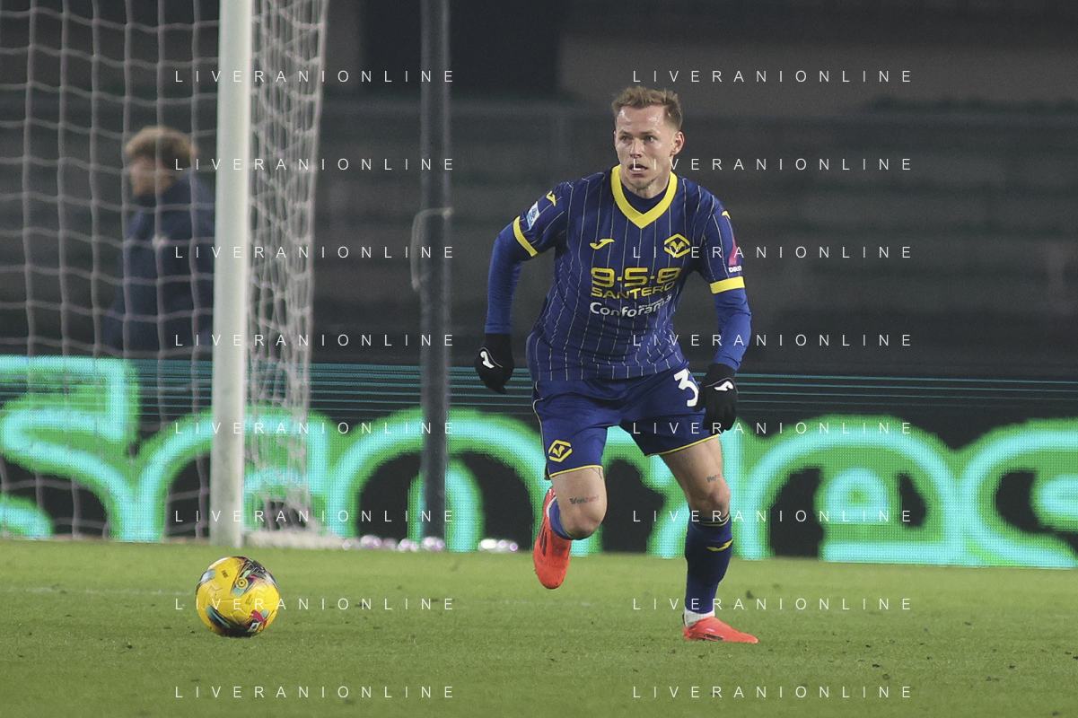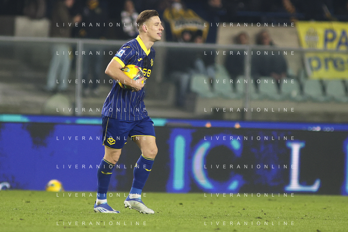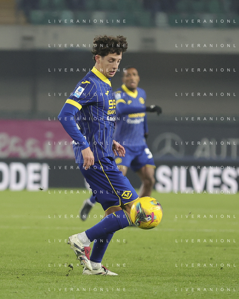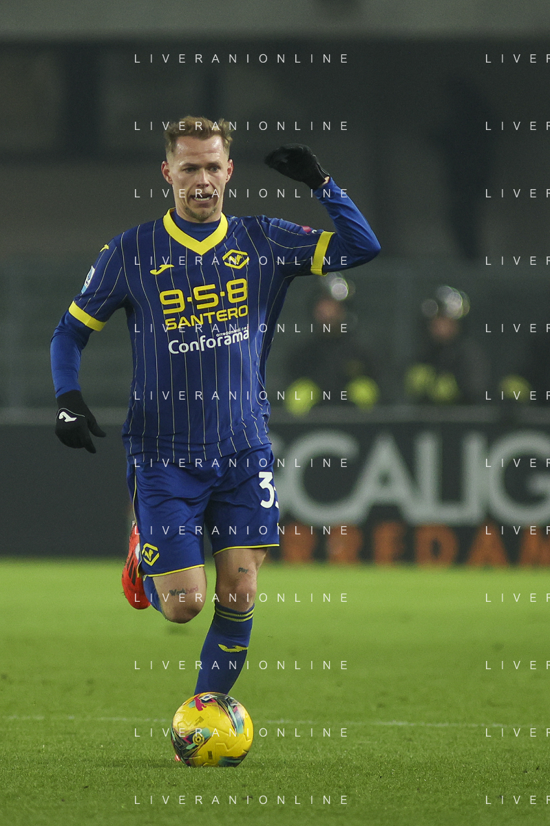 Pawel Dawidowicz of Hellas Verona FC play the ball during Hellas Verona FC vs Udinese Calcio, 19° Serie A Enilive 2024-25 game at Marcantonio Bentegodi stadium in Verona (VR), Italy, on January 04, 2025. (Photo by Davide Casentini)-AGENZIA ALDO LIVERANI SAS