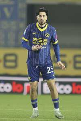 Daniele Ghilardi of Hellas Verona FC play the ball during Hellas Verona FC vs Udinese Calcio, 19° Serie A Enilive 2024-25 game at Marcantonio Bentegodi stadium in Verona (VR), Italy, on January 04, 2025. (Photo by Davide Casentini)-AGENZIA ALDO LIVERANI SAS