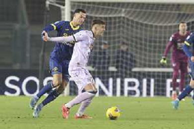 Jackson Tchatchoua of Hellas Verona FC competes for the ball with Jaka Bijol of Udinese FC during Hellas Verona FC vs Udinese Calcio, 19° Serie A Enilive 2024-25 game at Marcantonio Bentegodi stadium in Verona (VR), Italy, on January 04, 2025. (Photo by Davide Casentini)- AGENZIA ALDO LIVERANI SAS