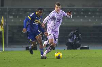 Jackson Tchatchoua of Hellas Verona FC play the ball during Hellas Verona FC vs Udinese Calcio, 19° Serie A Enilive 2024-25 game at Marcantonio Bentegodi stadium in Verona (VR), Italy, on January 04, 2025. (Photo by Davide Casentini)-AGENZIA ALDO LIVERANI SAS