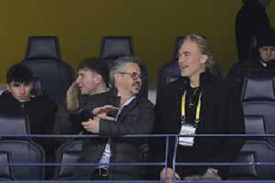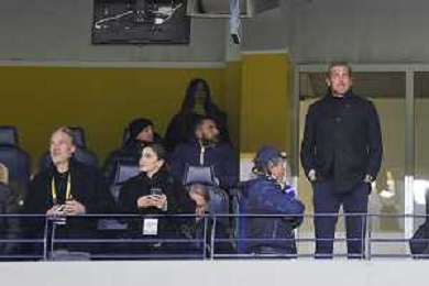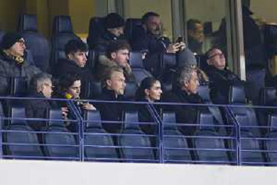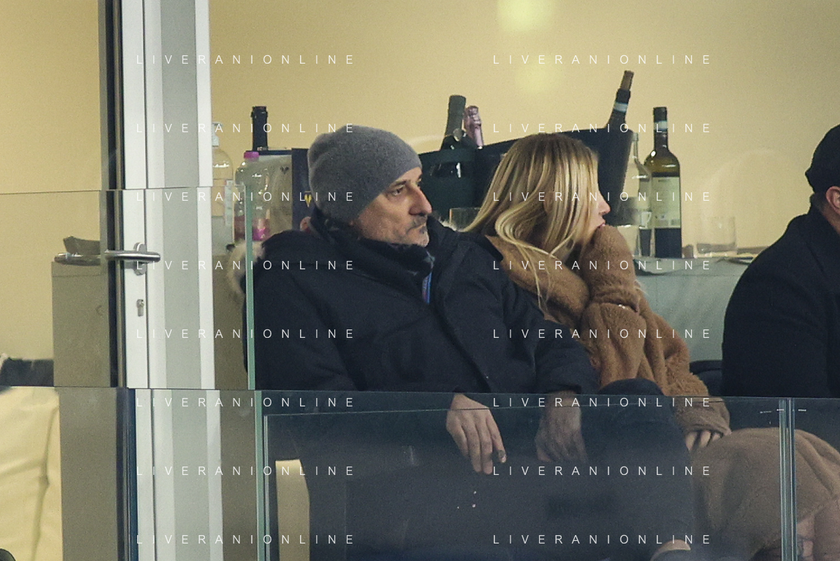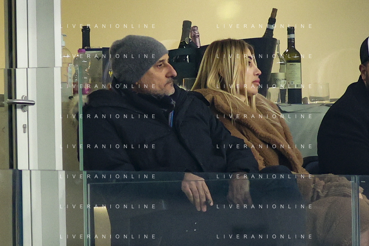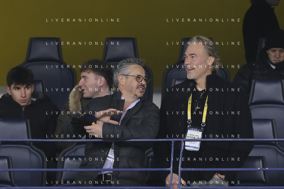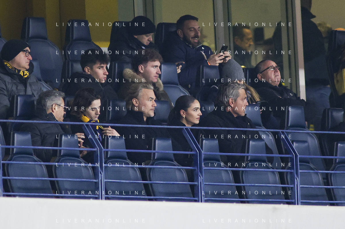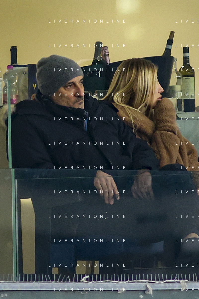 Two people of the new owners from Presidio Investors show the mathc Hellas Verona FC vs Udinese Calcio, 19° Serie A Enilive 2024-25 game at Marcantonio Bentegodi stadium in Verona (VR), Italy, on January 04, 2025. (Photo by Davide Casentini)-AGENZIA ALDO LIVERANI SAS