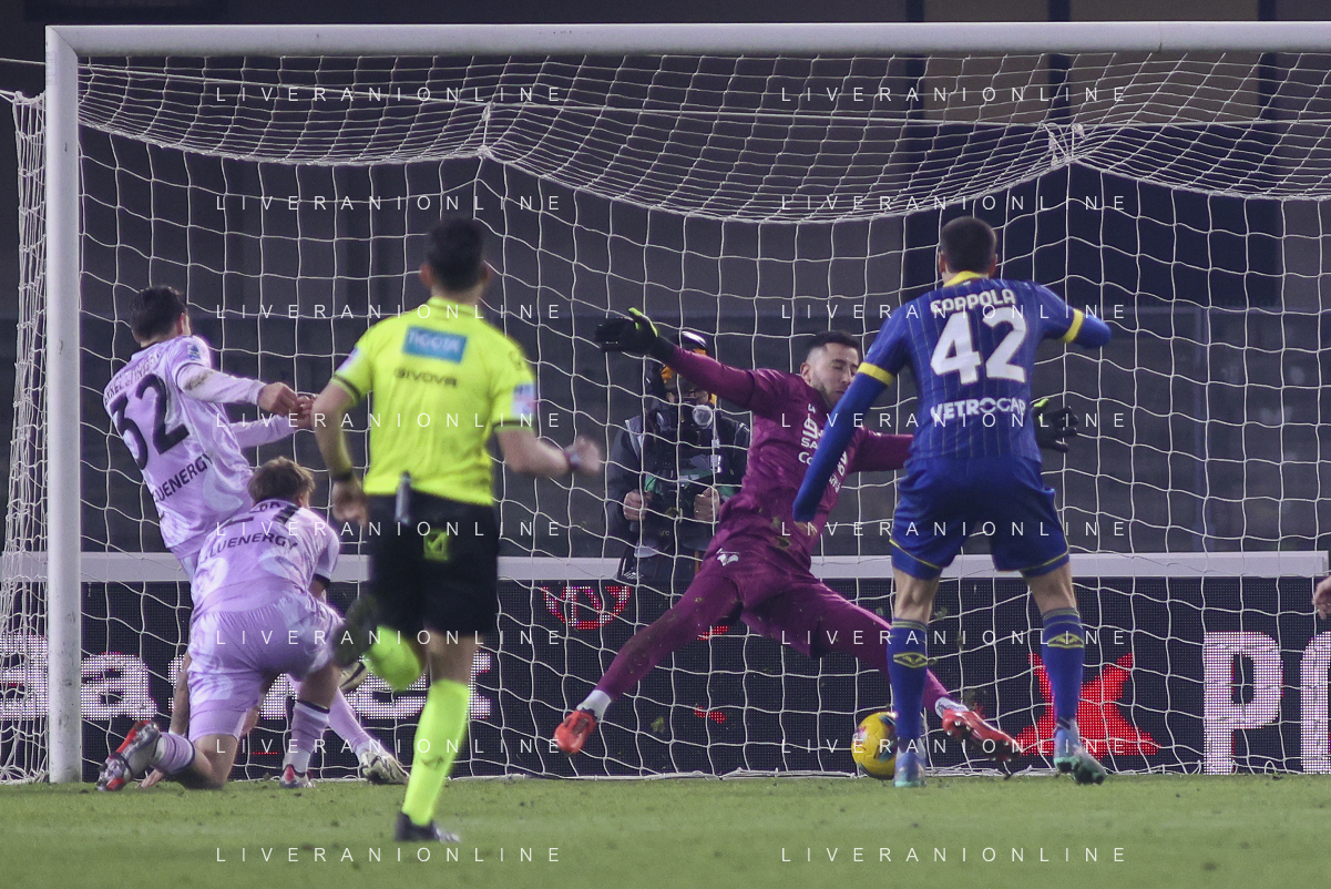 Lorenzo Montipo’ of Hellas Verona FC makes a save during Hellas Verona FC vs Udinese Calcio, 19° Serie A Enilive 2024-25 game at Marcantonio Bentegodi stadium in Verona (VR), Italy, on January 04, 2025. (Photo by Davide Casentini)-AGENZIA ALDO LIVERANI SAS
