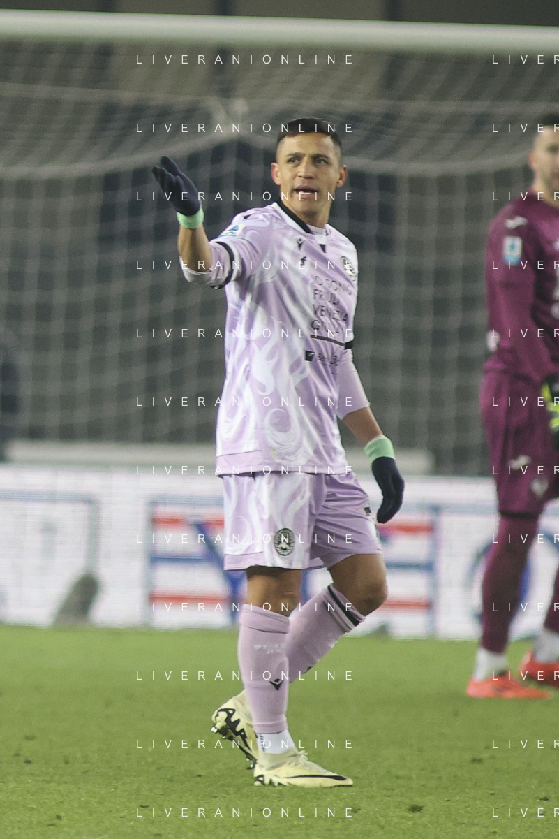 Alexis Sanchez of Udinese FC gestures during Hellas Verona FC vs Udinese Calcio, 19° Serie A Enilive 2024-25 game at Marcantonio Bentegodi stadium in Verona (VR), Italy, on January 04, 2025. (Photo by Davide Casentini)- AGENZIA ALDO LIVERANI SAS
