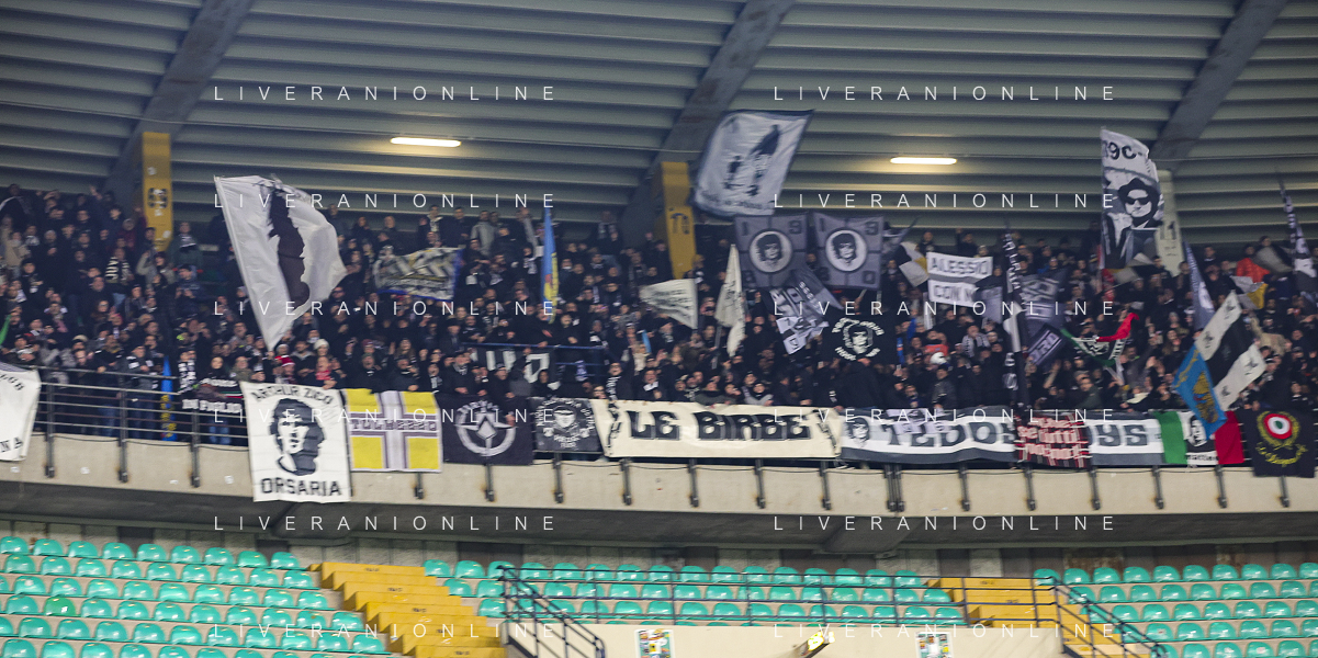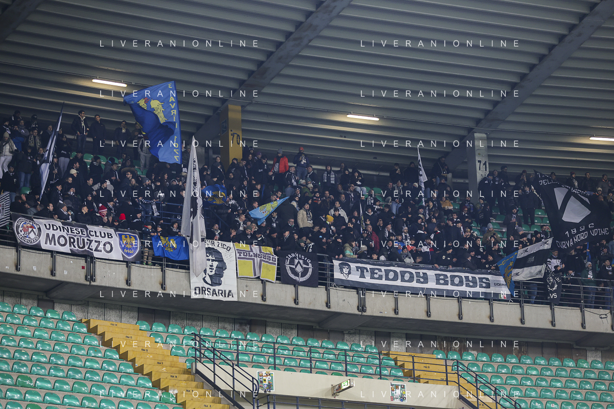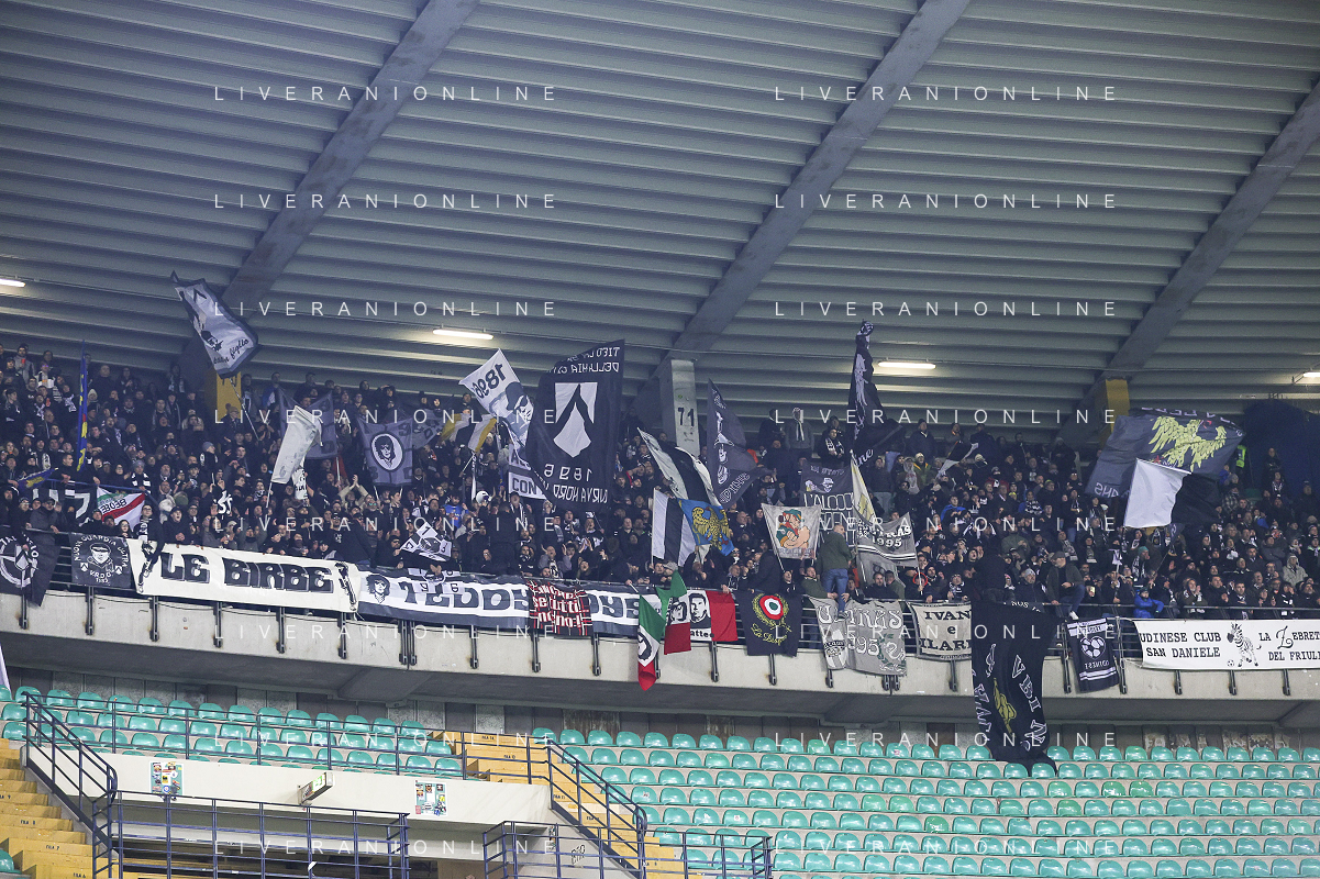 Tifosi - Udinese fans show their support during Hellas Verona FC vs Udinese Calcio, 19° Serie A Enilive 2024-25 game at Marcantonio Bentegodi stadium in Verona (VR), Italy, on January 04, 2025. (Photo by Davide Casentini)-AGENZIA ALDO LIVERANI SAS