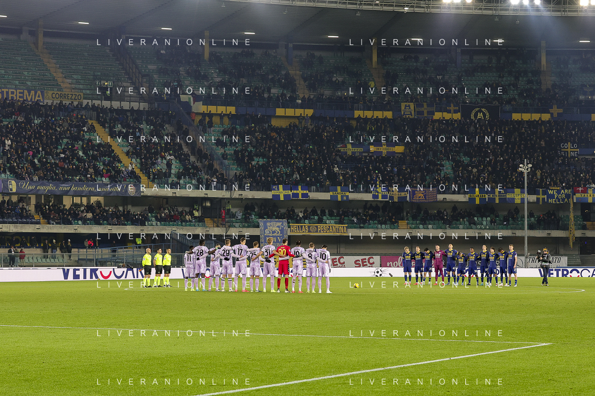 Minuto di silenzio - 1 minute of silence in memori of Aldo Agroppi before Hellas Verona FC vs Udinese Calcio, 19° Serie A Enilive 2024-25 game at Marcantonio Bentegodi stadium in Verona (VR), Italy, on January 04, 2025. (Photo by Davide Casentini)-AGENZIA ALDO LIVERANI SAS