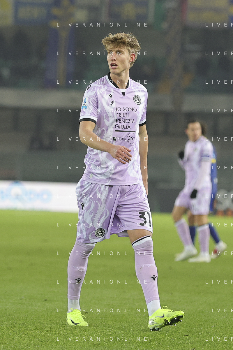 Thomas Thiesson Kristensen of Udinese FC during Hellas Verona FC vs Udinese Calcio, 19° Serie A Enilive 2024-25 game at Marcantonio Bentegodi stadium in Verona (VR), Italy, on January 04, 2025. (Photo by Davide Casentini)-AGENZIA ALDO LIVERANI SAS