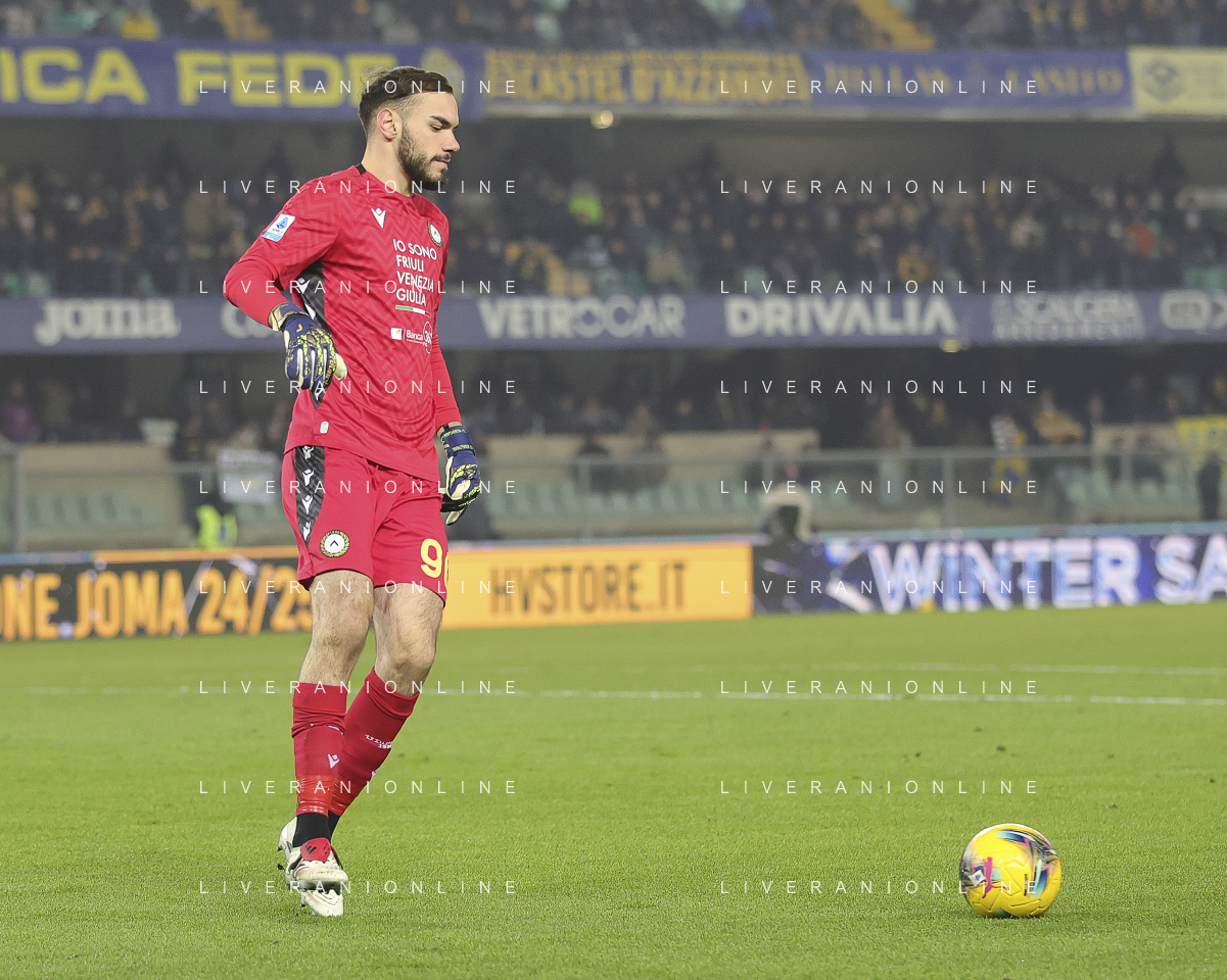 Razvan Sava of Udinese FC play the ball during Hellas Verona FC vs Udinese Calcio, 19° Serie A Enilive 2024-25 game at Marcantonio Bentegodi stadium in Verona (VR), Italy, on January 04, 2025. (Photo by Davide Casentini)-AGENZIA ALDO LIVERANI SAS