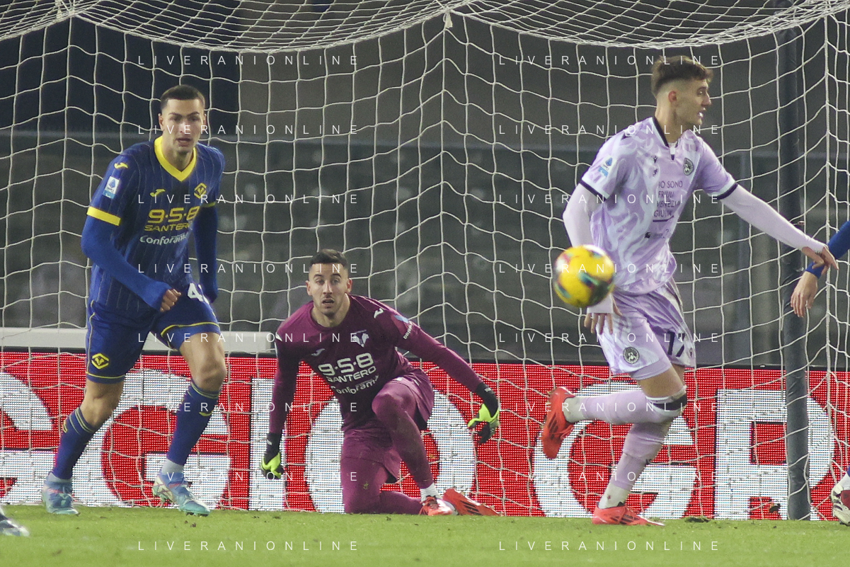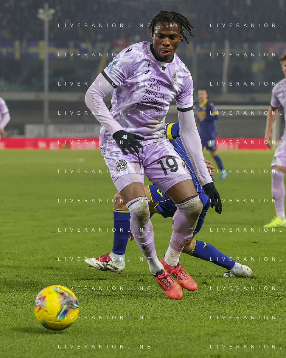 Lorenzo Lucca of Udinese FC play the ball during Hellas Verona FC vs Udinese Calcio, 19° Serie A Enilive 2024-25 game at Marcantonio Bentegodi stadium in Verona (VR), Italy, on January 04, 2025. (Photo by Davide Casentini)-AGENZIA ALDO LIVERANI SAS