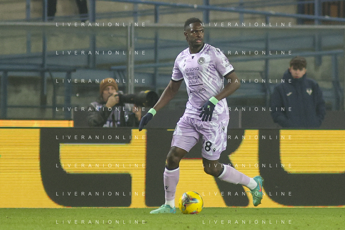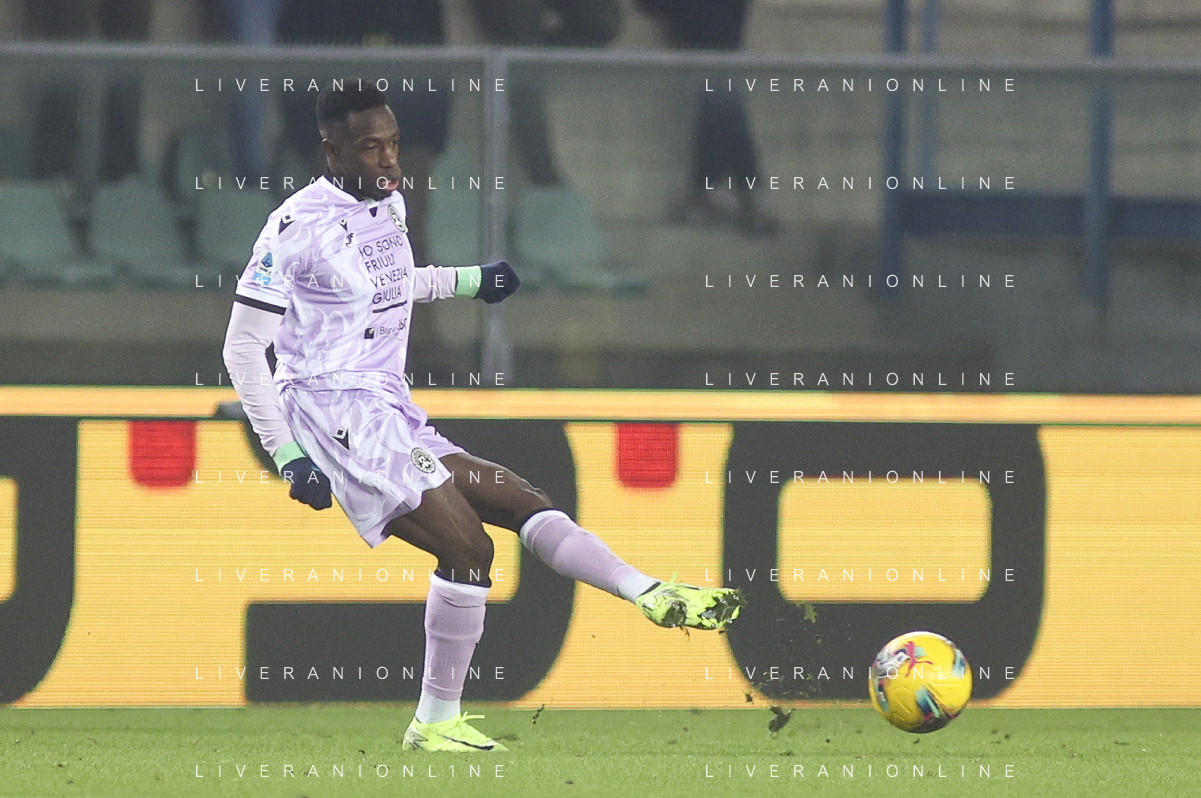 Hassane Kamara of Udinese FC play the ball during Hellas Verona FC vs Udinese Calcio, 19° Serie A Enilive 2024-25 game at Marcantonio Bentegodi stadium in Verona (VR), Italy, on January 04, 2025. (Photo by Davide Casentini)-AGENZIA ALDO LIVERANI SAS