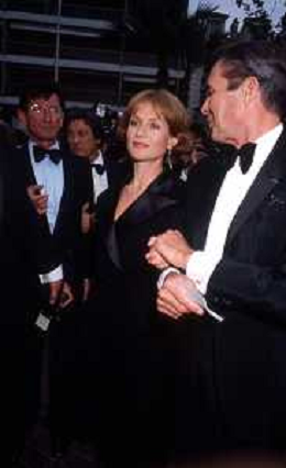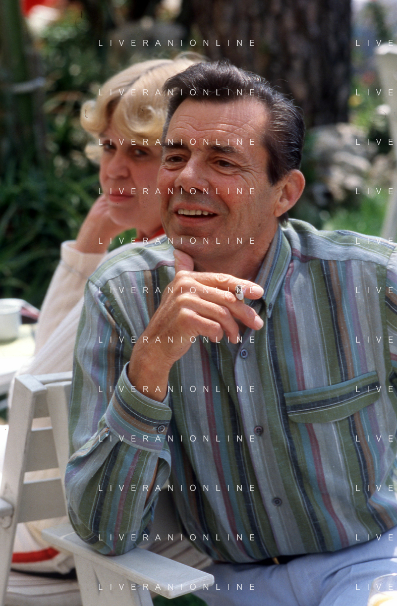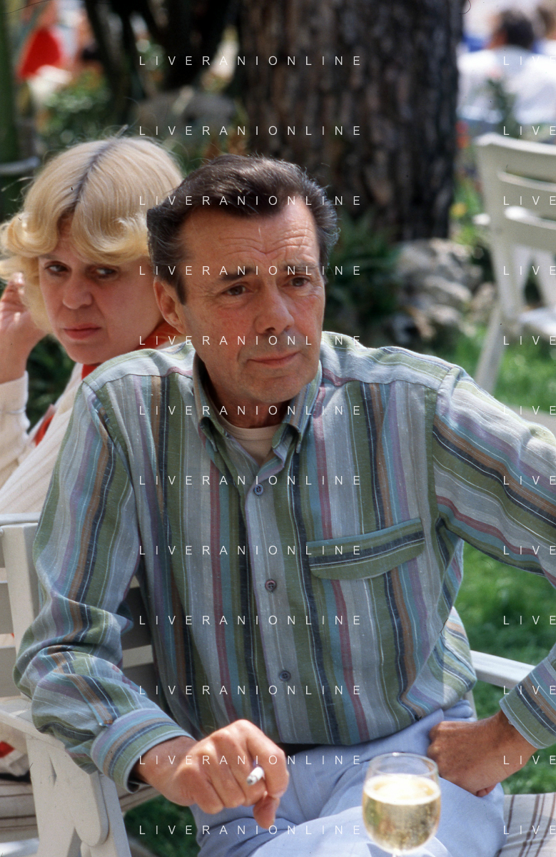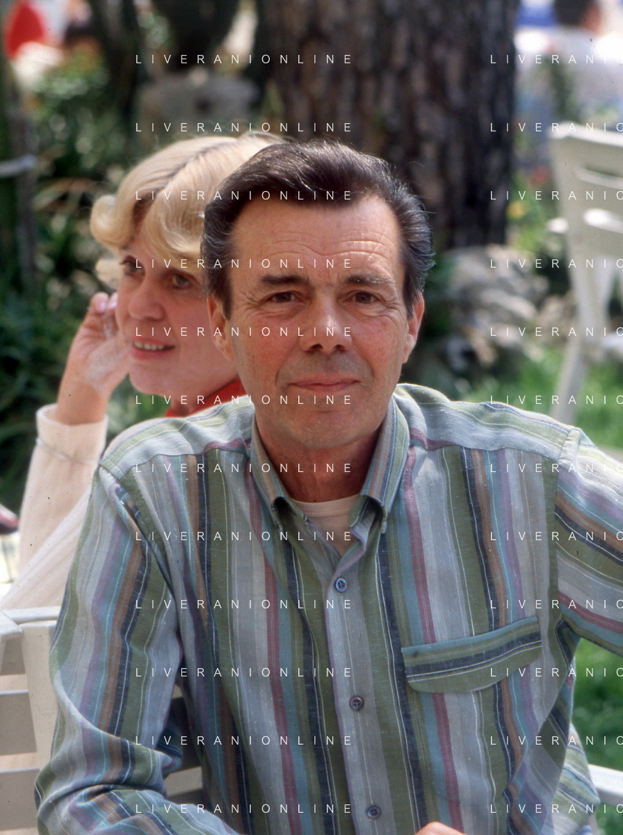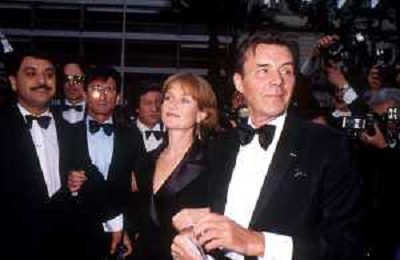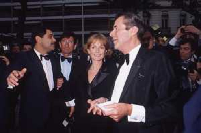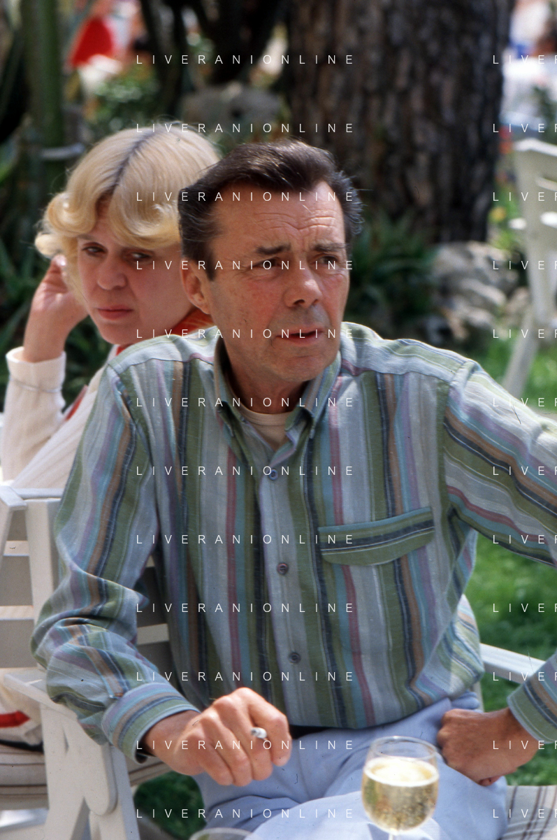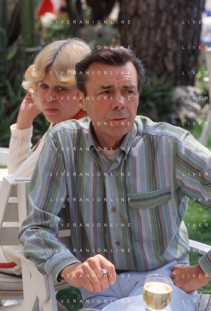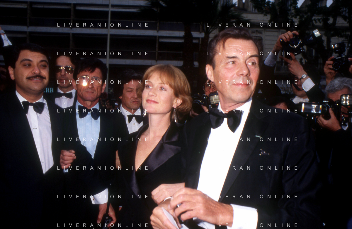 DIA-RETROSPETTIVA DIRK BOGARDE ATTORE E CANTANTE NELLA FOTO DIRK BOGARDE A CANNES NELL’ANNO 1984 CON ISABELLE HUPPERT AG ALDO LIVERANI SAS