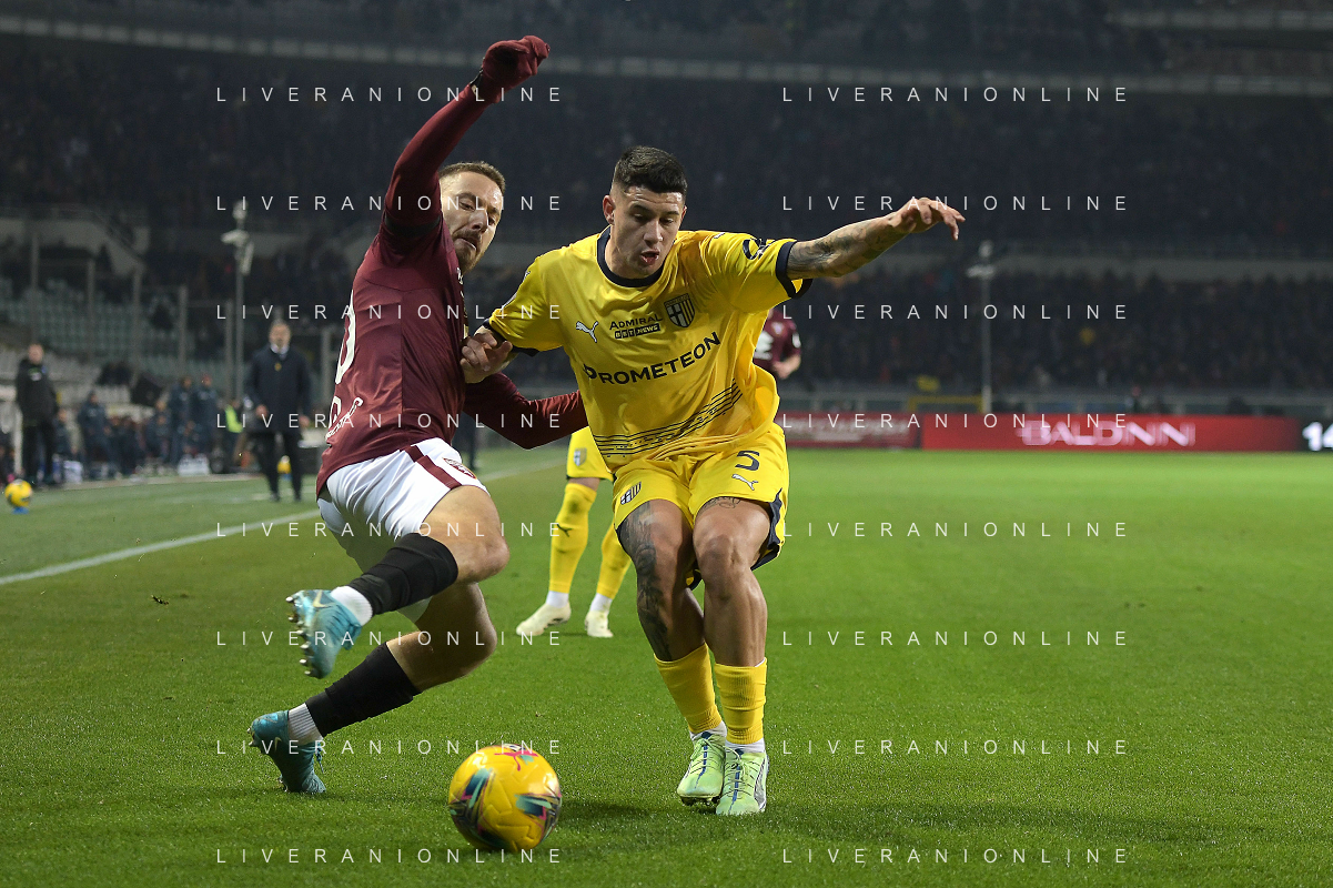 TVMV-Torino 05.01.2025 Stadio Grande Torino @Manuela Viganti/Ag. Aldo Liverani sas Torino vs Parma Campionato Calcio Serie A Enilive 2024/2025 19a giornata Nella foto: guillermomaripan e valentin mihaila