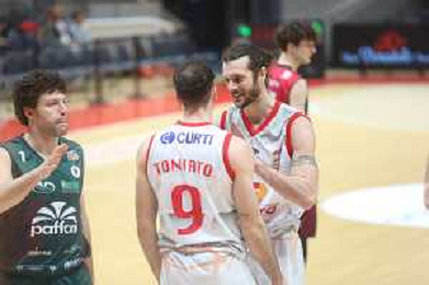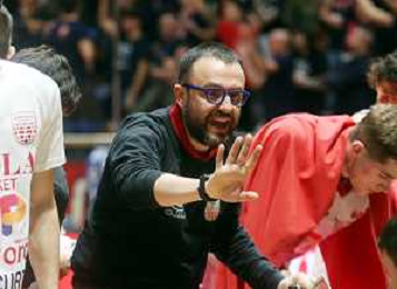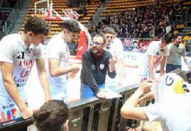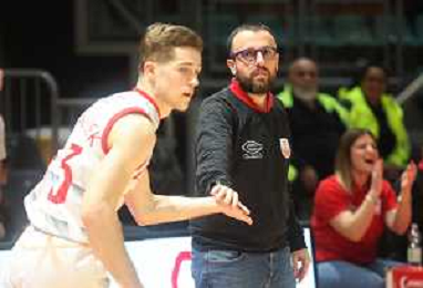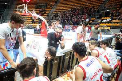 BOLOGNA PALADOZZA 06 01 2025 UP ANDREA COSTA IMOLA-PAFFONI FULGOR BASKET OMEGNA SERIE B1 NELLA FOTO MAKS KLANJSCEK E ALLENATORE DELL'UP ANDREA COSTA MATTEO ANGORI DOPO IL CANESTRO DI MAKS FOTO GIANNI SANNA-AG ALDO LIVERANI SAS