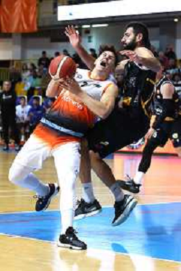 Reggio Calabria 05/01/2025 PalaCalafiore Campionato Serie B Interregionale Basket maschile. Redel Viola Reggio Calabria vs Siaz P.za Armerina. In foto: Luzza P.za Armerina e Fernandez Redel Viola foto pasquale gareffa-ag aldo liverani sas