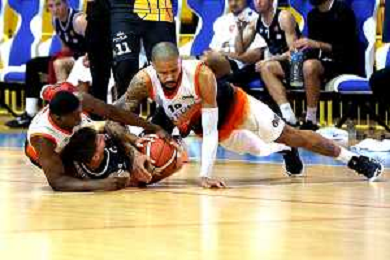 Reggio Calabria 05/01/2025 PalaCalafiore Campionato Serie B Interregionale Basket maschile. Redel Viola Reggio Calabria vs Siaz P.za Armerina. In foto: Manisi P.za Armerina e Bangu e Donati Redel Viola si contendono la palla foto pasquale gareffa-ag aldo liverani sas