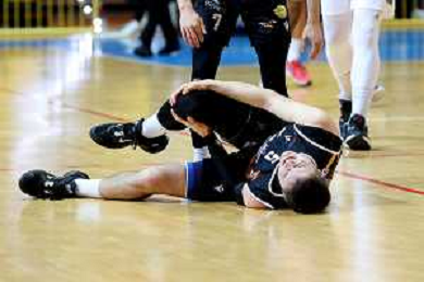 Reggio Calabria 05/01/2025 PalaCalafiore Campionato Serie B Interregionale Basket maschile. Redel Viola Reggio Calabria vs Siaz P.za Armerina. In foto: Infortunio al ginocchio per Labovic P.za Armerina foto pasquale gareffa-ag aldo liverani sas