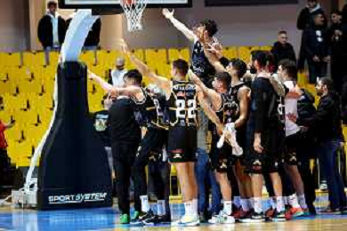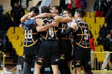 Reggio Calabria 05/01/2025 PalaCalafiore Campionato Serie B Interregionale Basket maschile. Redel Viola Reggio Calabria vs Siaz P.za Armerina. In foto: P.za Armerina festeggia sotto i loro tifosi la vittoria foto pasquale gareffa-ag aldo liverani sas