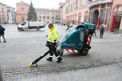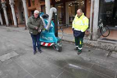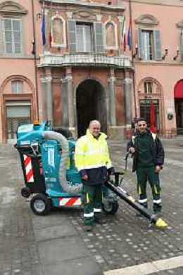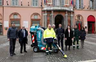 IMOLA 08 01 2025 PIAZZA MATTEOTTI GLUTTON,NUOVO STRUMENTO DI PULIZIA URBANA IN CENTRO STORICO PRESENZA DEL SINDACO MARCO PANIERI VICE SINDACO ELISA SPADA E ASSESSORE PIERANGELO RAFFINI E LA DITTA CHA FA LE PULIZIE FOTO GIANNI SANNA-AG ALDO LIVERANI SAS