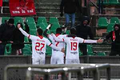 Cosenza vs Mantova Campionato Serie BKT 2024-2025 Catanzaro 12/01/2025 Nella foto: Festa gol Maggioni Mantova 2-1 ©ANDREA ROSITO -AGENZIA ALDO LIVERANI SAS- AGENZIA ALDO LIVERANI SAS