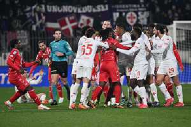 TVRG Monza vs Fiorentina nella foto tensione tra i giocatori Monza 13-01-2025 U-Power Stadium Campionato Serie A Enilive - 20a giornata foto Roberto Garavaglia/Agenzia Aldo Liverani sas