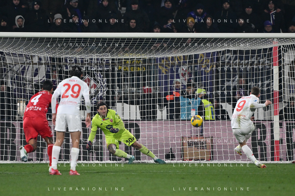 TVRG Monza vs Fiorentina nella foto Lucas Beltran (Fiorentina) segna il gol dell'1 a 2 Monza 13-01-2025 U-Power Stadium Campionato Serie A Enilive - 20a giornata foto Roberto Garavaglia/Agenzia Aldo Liverani sas