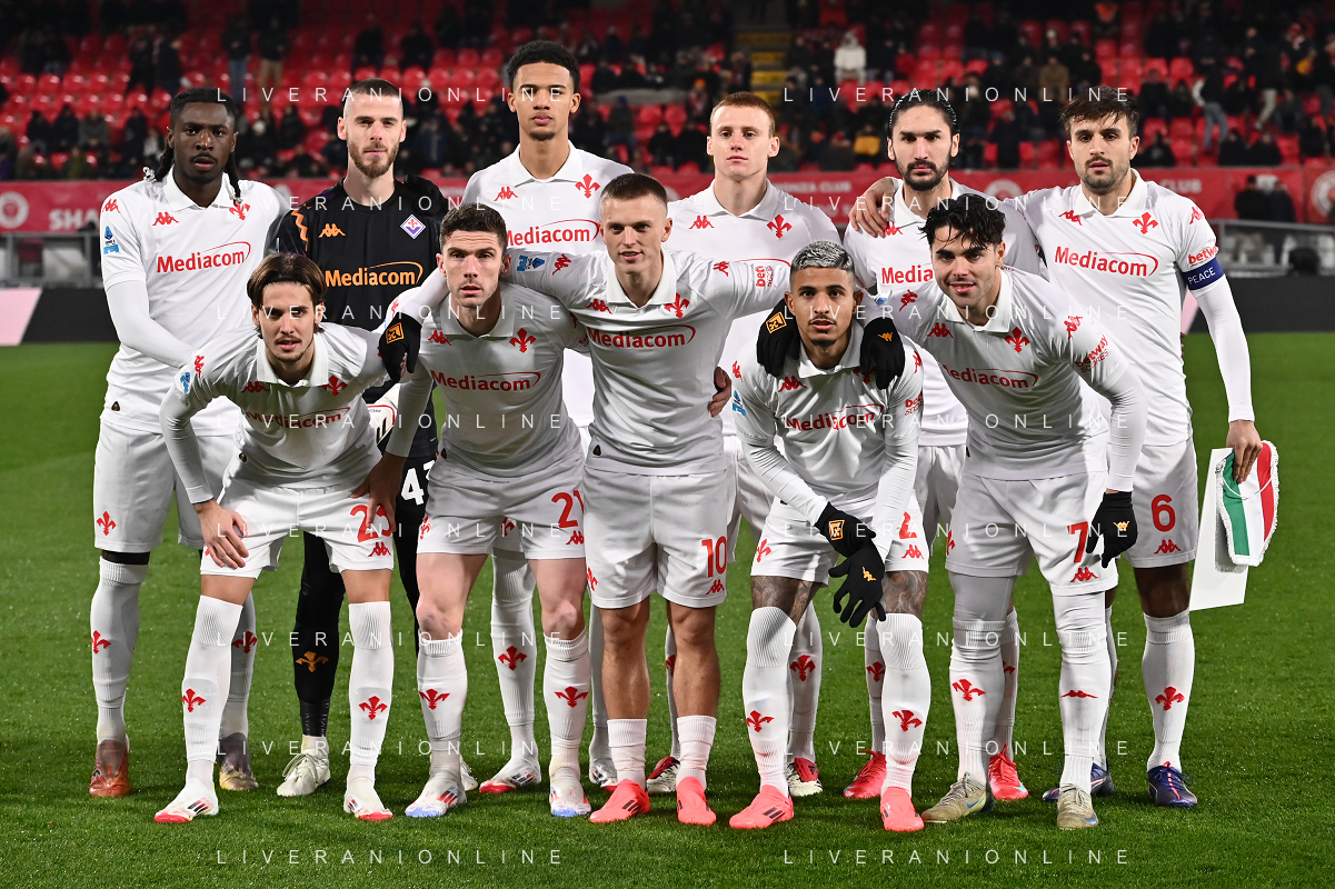 TVRG Monza vs Fiorentina nella foto formazione Fiorentina, in piedi da SX Moise Kean, David De Gea, Amir Richardson, Pietro Comuzzo, Yacine Adli e Luca Ranieri; in basso da SX Andrea Colpani, Robin Gosens, Albert Gudmundsson, Domilson Cordeiro dos Santos Dodo' e Riccardo Sottil Monza 13-01-2025 U-Power Stadium Campionato Serie A Enilive - 20a giornata foto Roberto Garavaglia/Agenzia Aldo Liverani sas