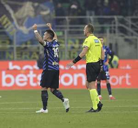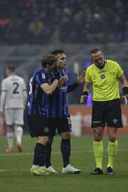 ARBITRO PAIRETTO CON LAUTARO MARTINEZ E NICOLO’ BARELLA -INTER vs BOLOGNA Campionato Calcio Serie A 15-01-2025 ©PAOLO GIAMPIETRI-AGENZIA ALDO LIVERANI SAS